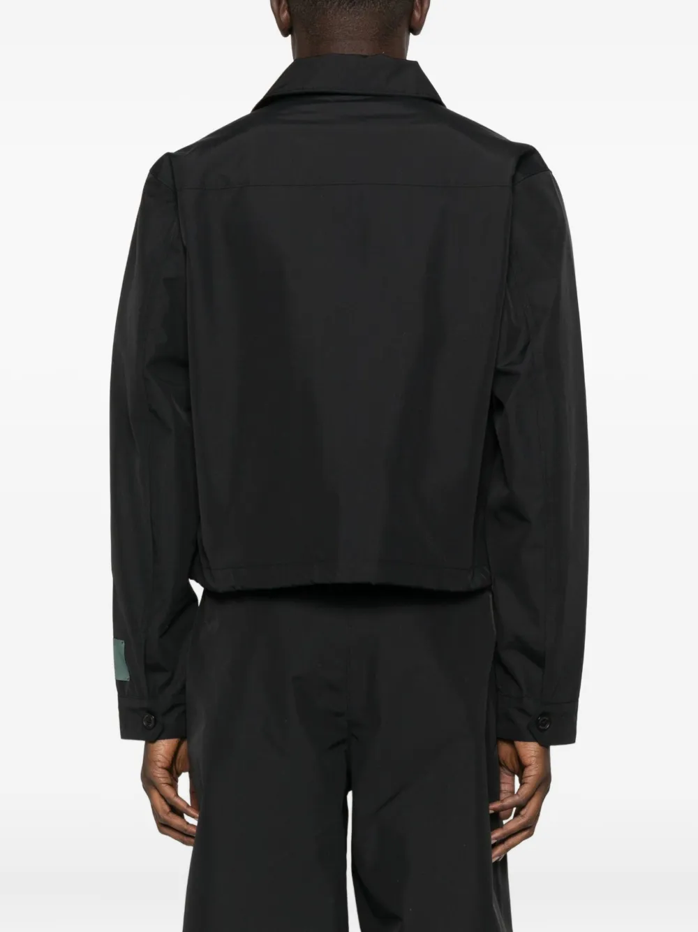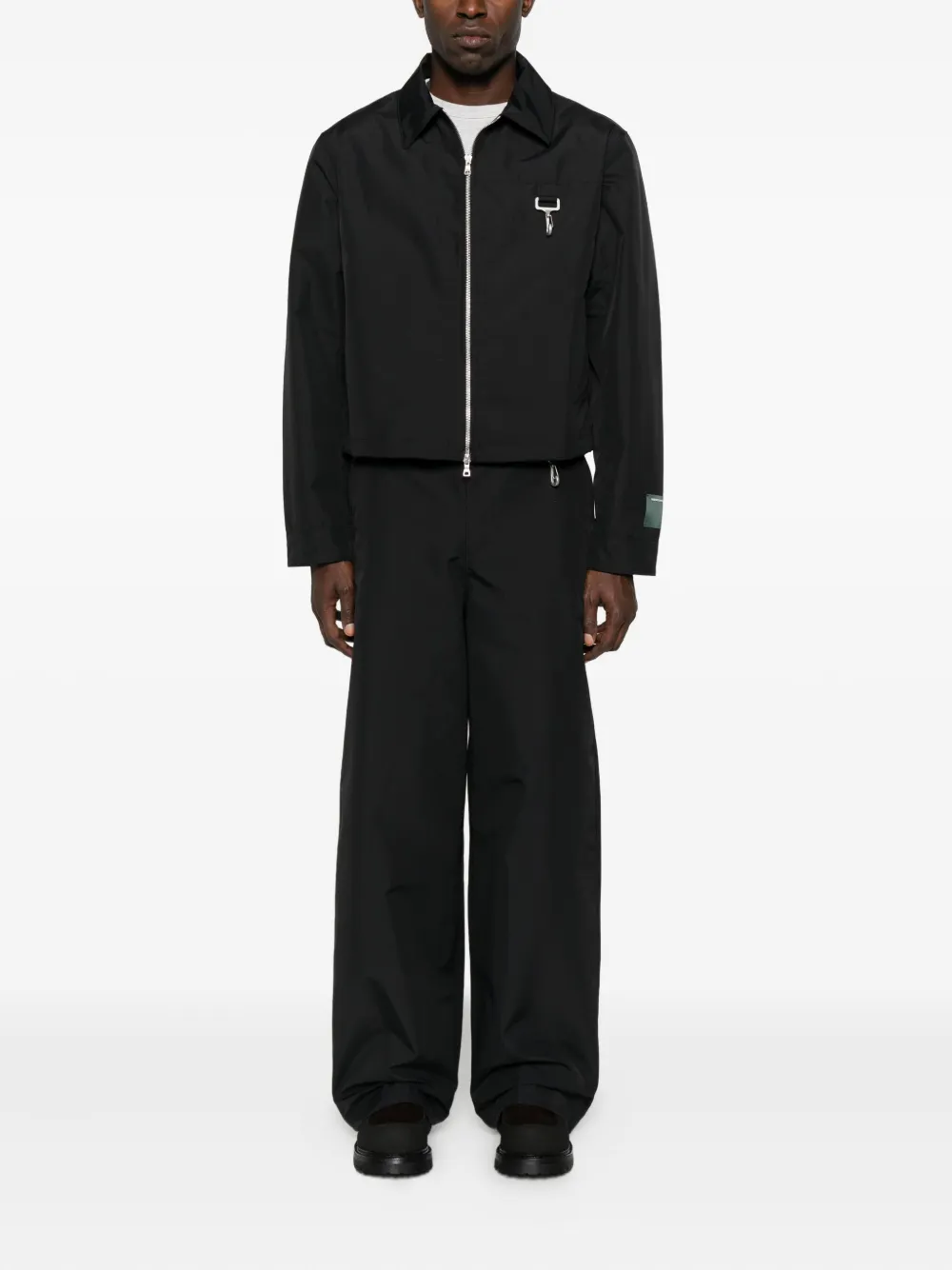 Черный застежка-молния спереди воротник длинные рукава детали из металла прямой низ