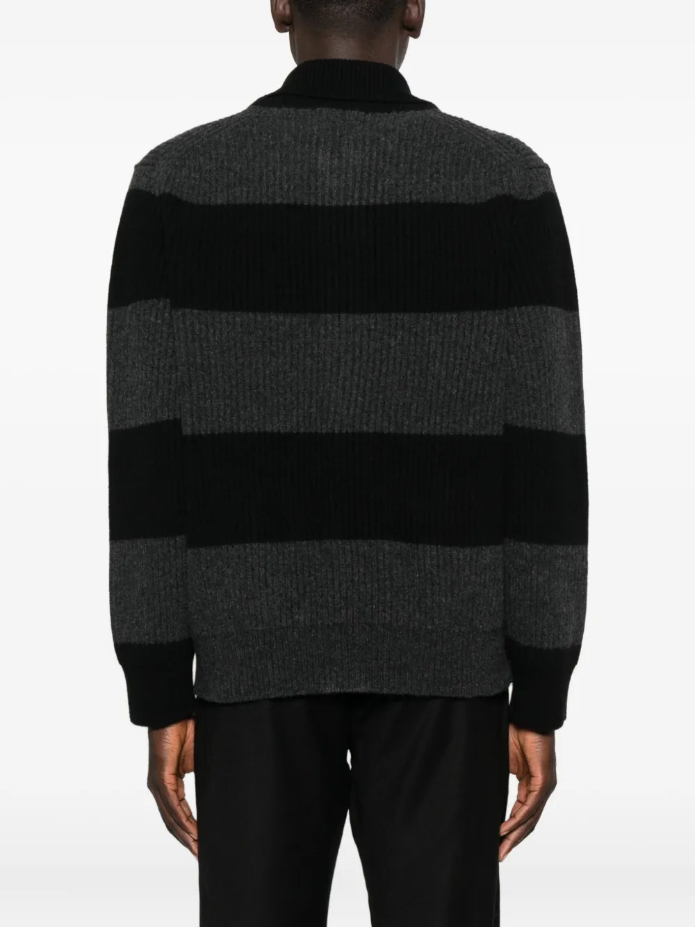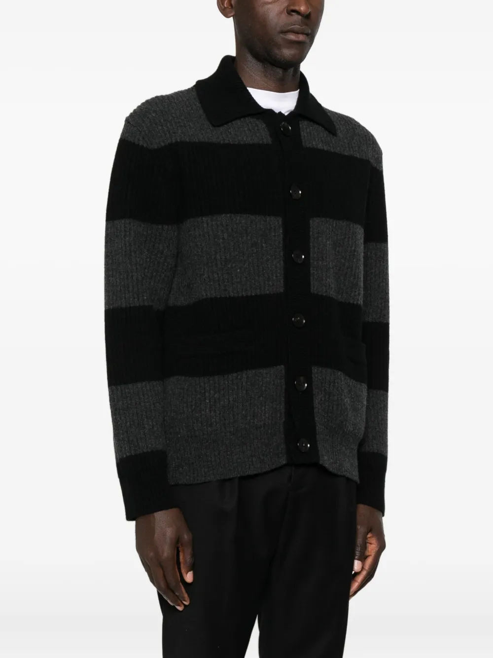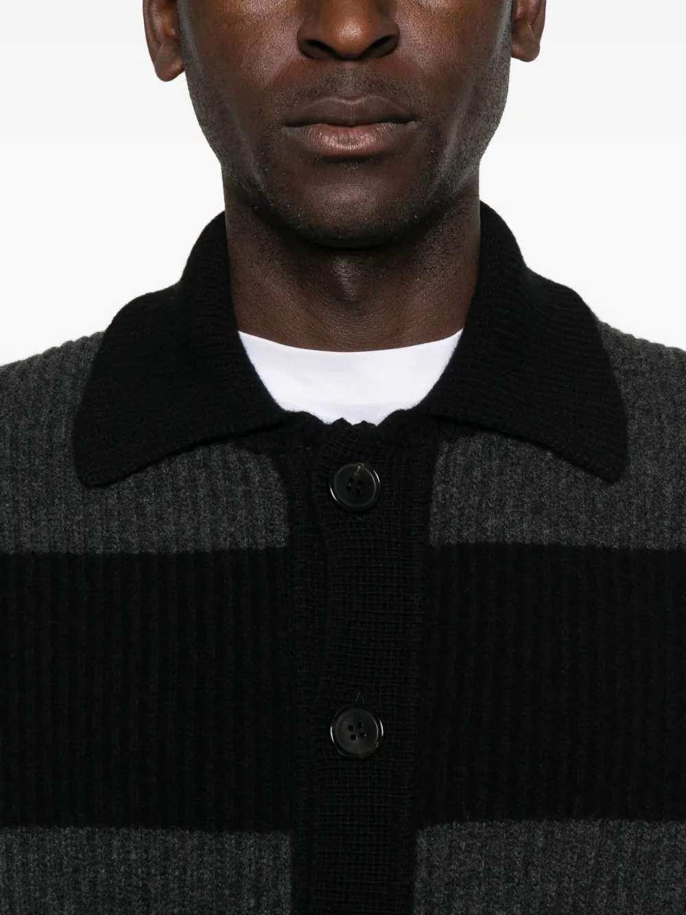 Антрацитово-серый/черный полосатый узор застежка на пуговицы спереди воротник поло нагрудные карманы длинные рукава