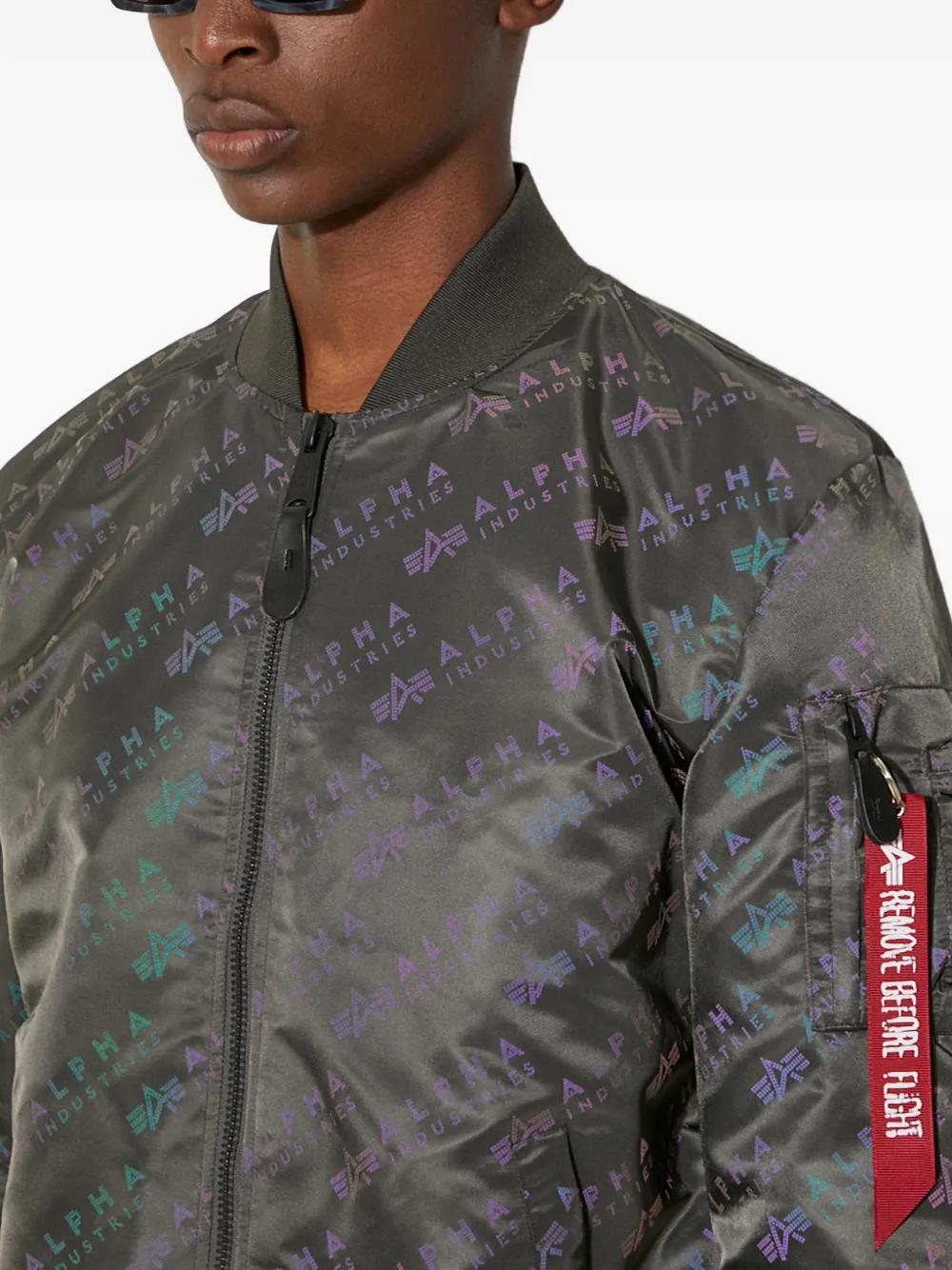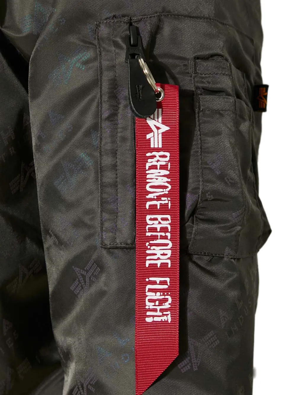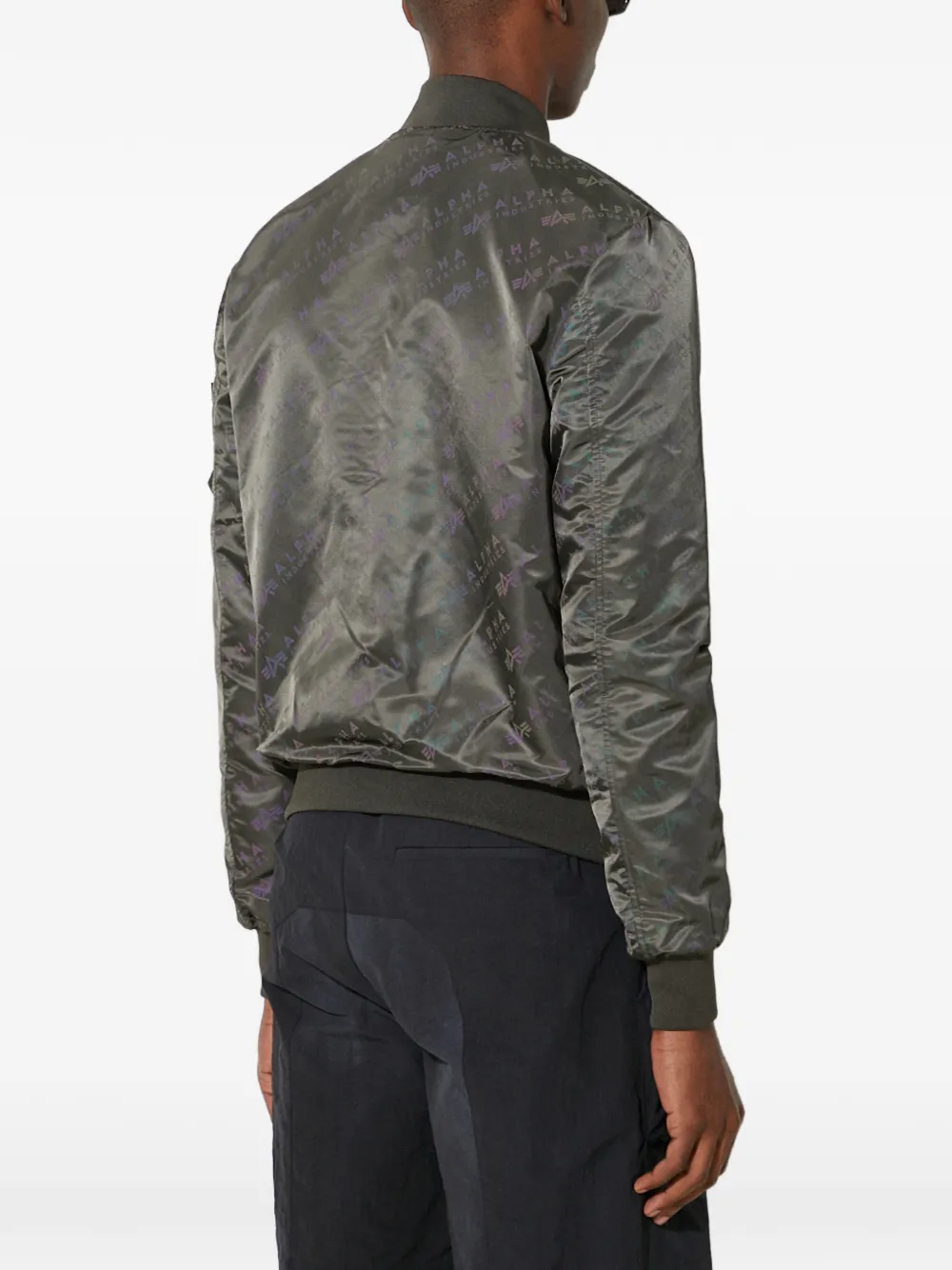 Серый цвет, принт с логотипом по всей поверхности, застежка-молния, ребристые манжеты и нижний край, карман на рукаве на молнии