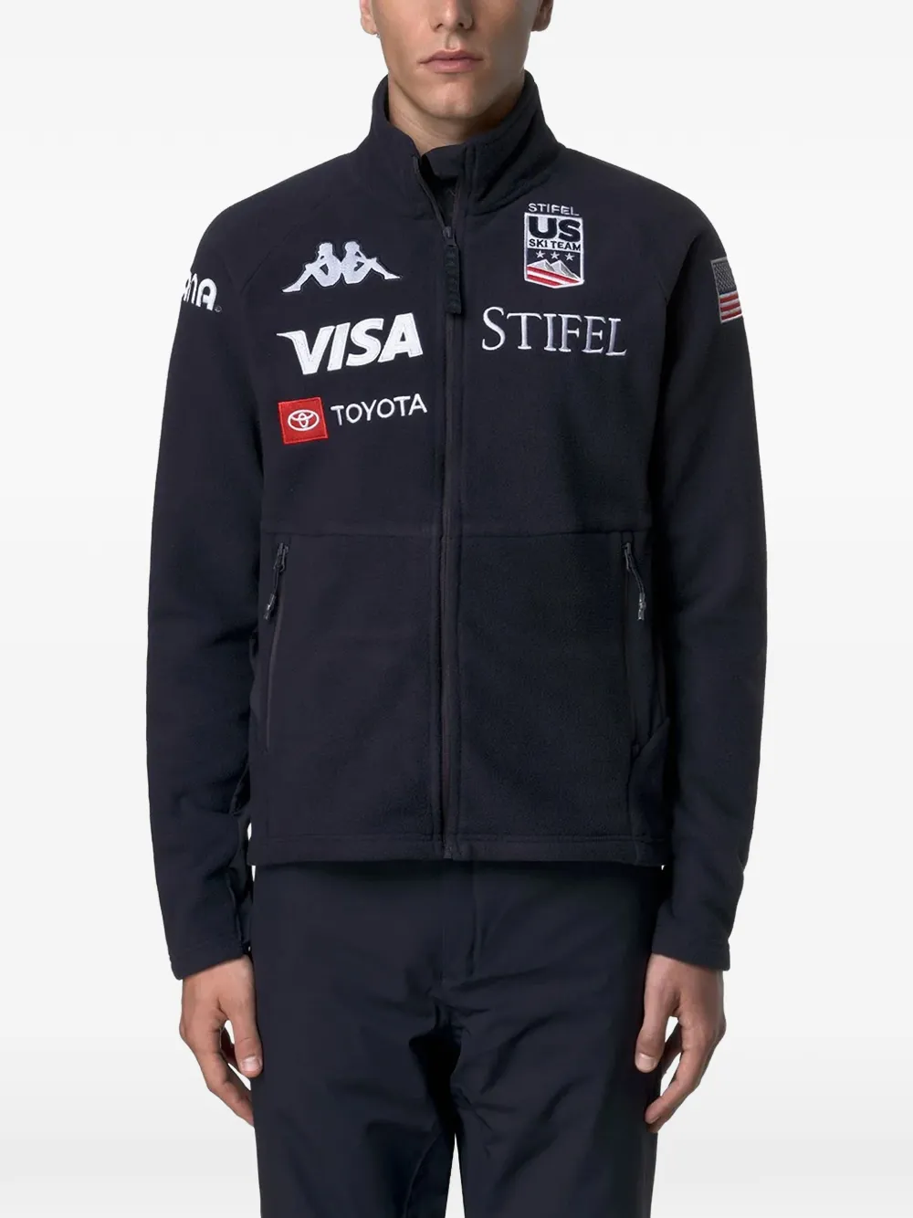 Синий баритон, застежка-молния, длинные рукава, логотип, передние карманы на молнии