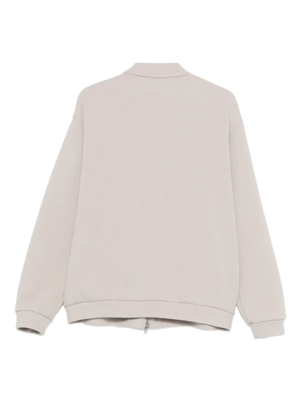 Светло-бежевый цвет, воротник-бейсбольный, застежка-молния, прорезные карманы, длинные рукава, манжеты в резинку