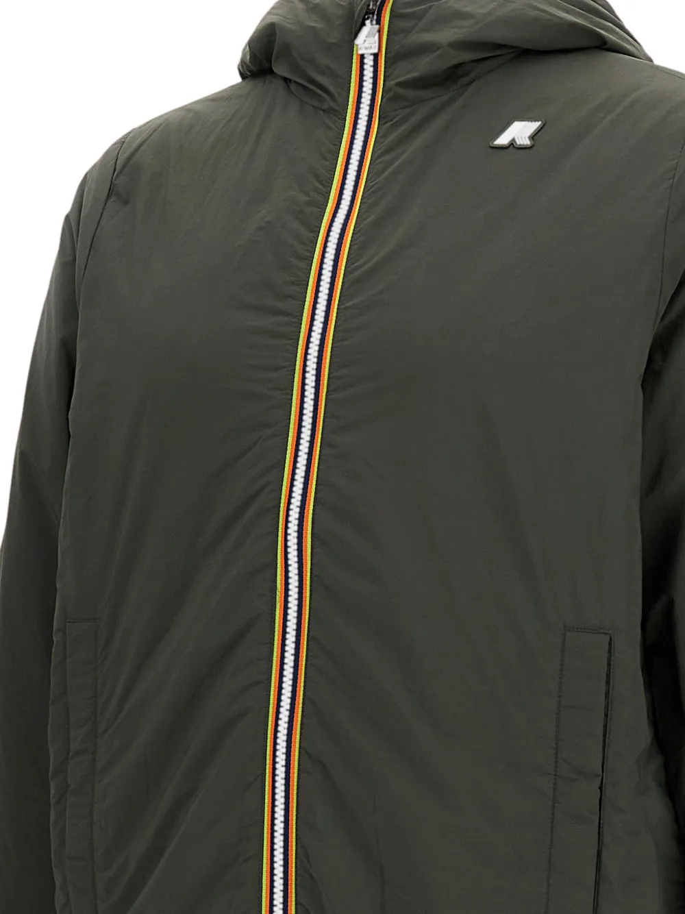 Темно-зеленый застежка-молния спереди классический капюшон длинные рукава патч с логотипом на груди боковые прорезные карманы