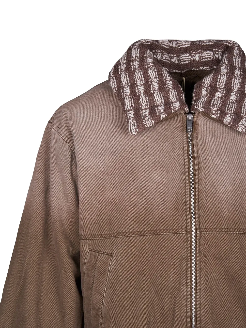 Коричневый вязаный воротник, застежка-молния спереди, передний карман, ребристый низ