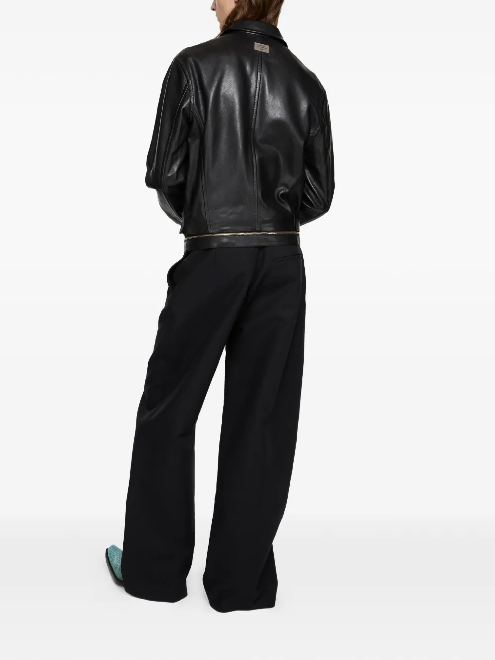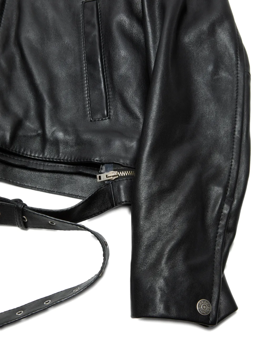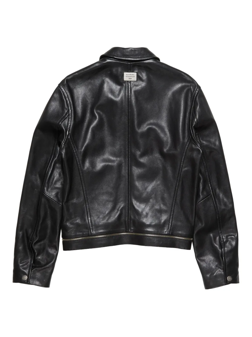 Кожаная куртка с поясом Acne Studios, черный 263 010₽
