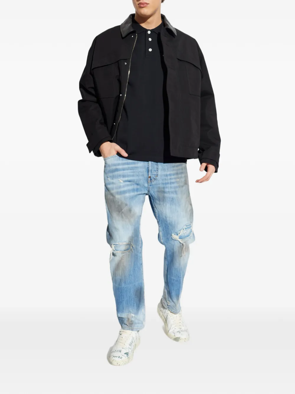 Куртка с кожаным воротником Golden Goose, черный