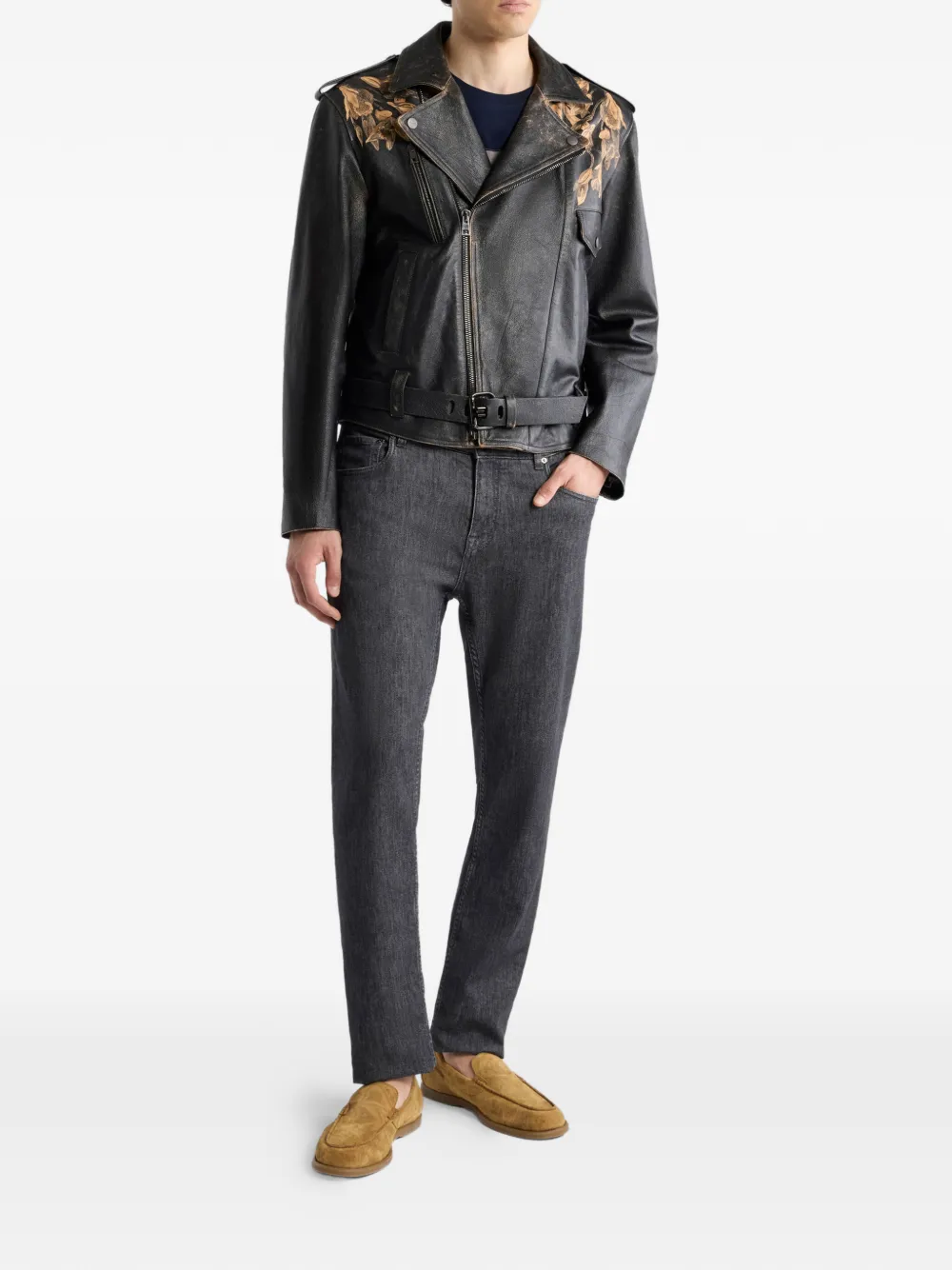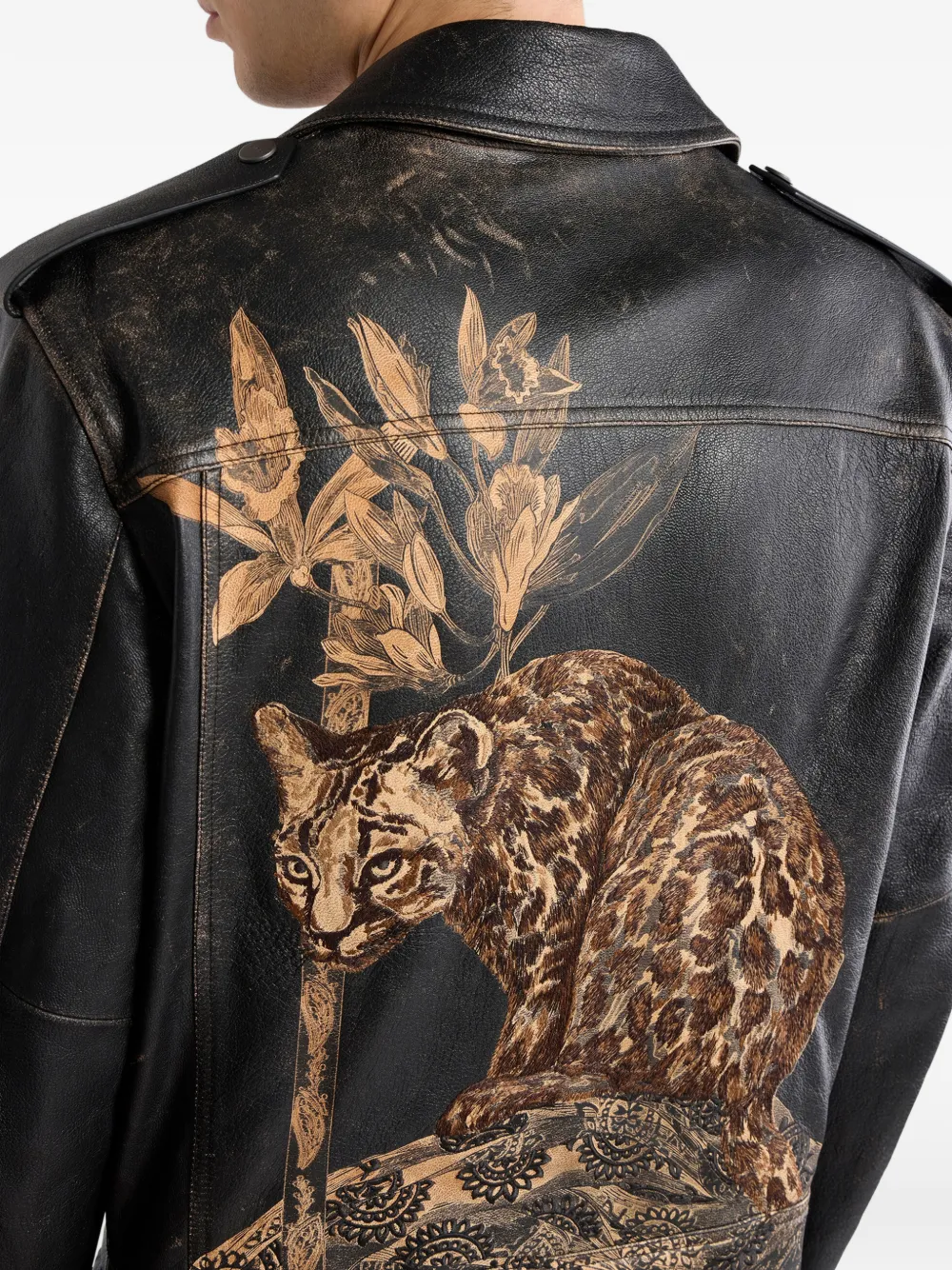Кожаная куртка с леопардовым принтом Etro, черный