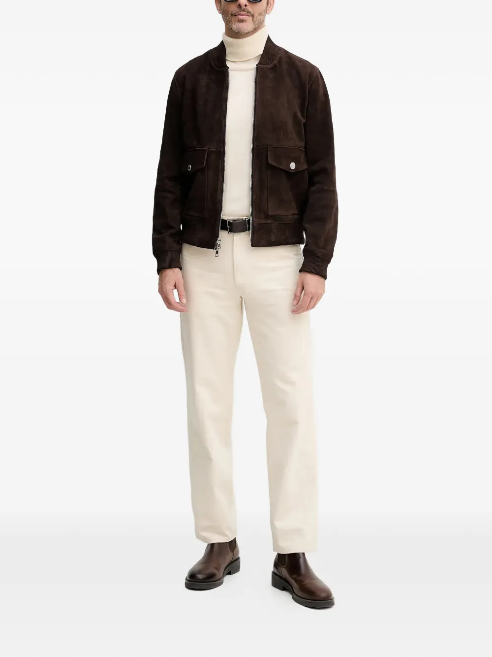 Коричневая модель с ребристой отделкой, застежкой-молнией и накладными карманами с клапанами