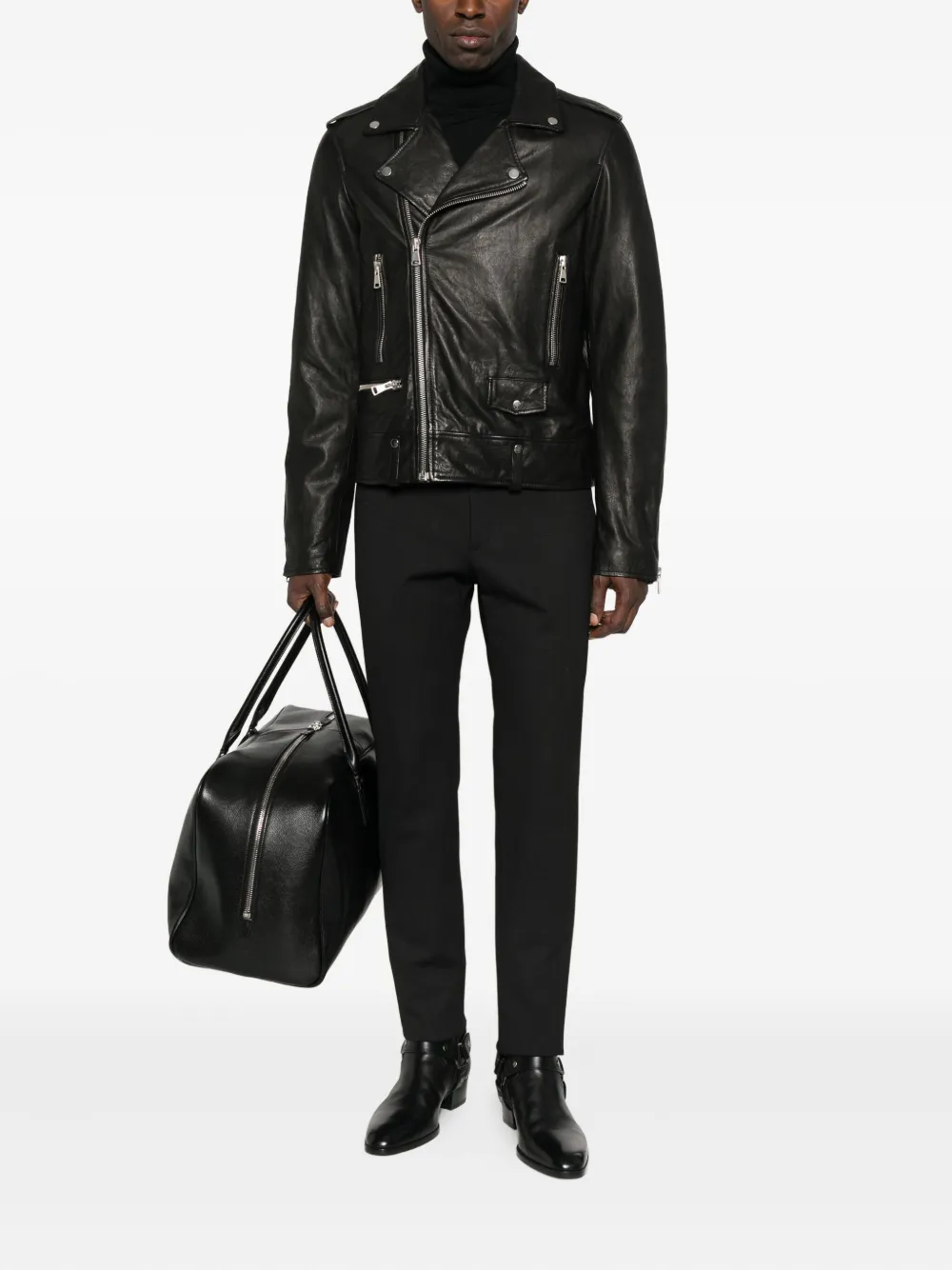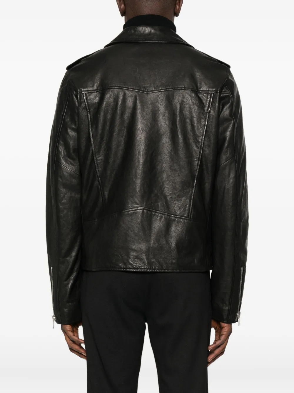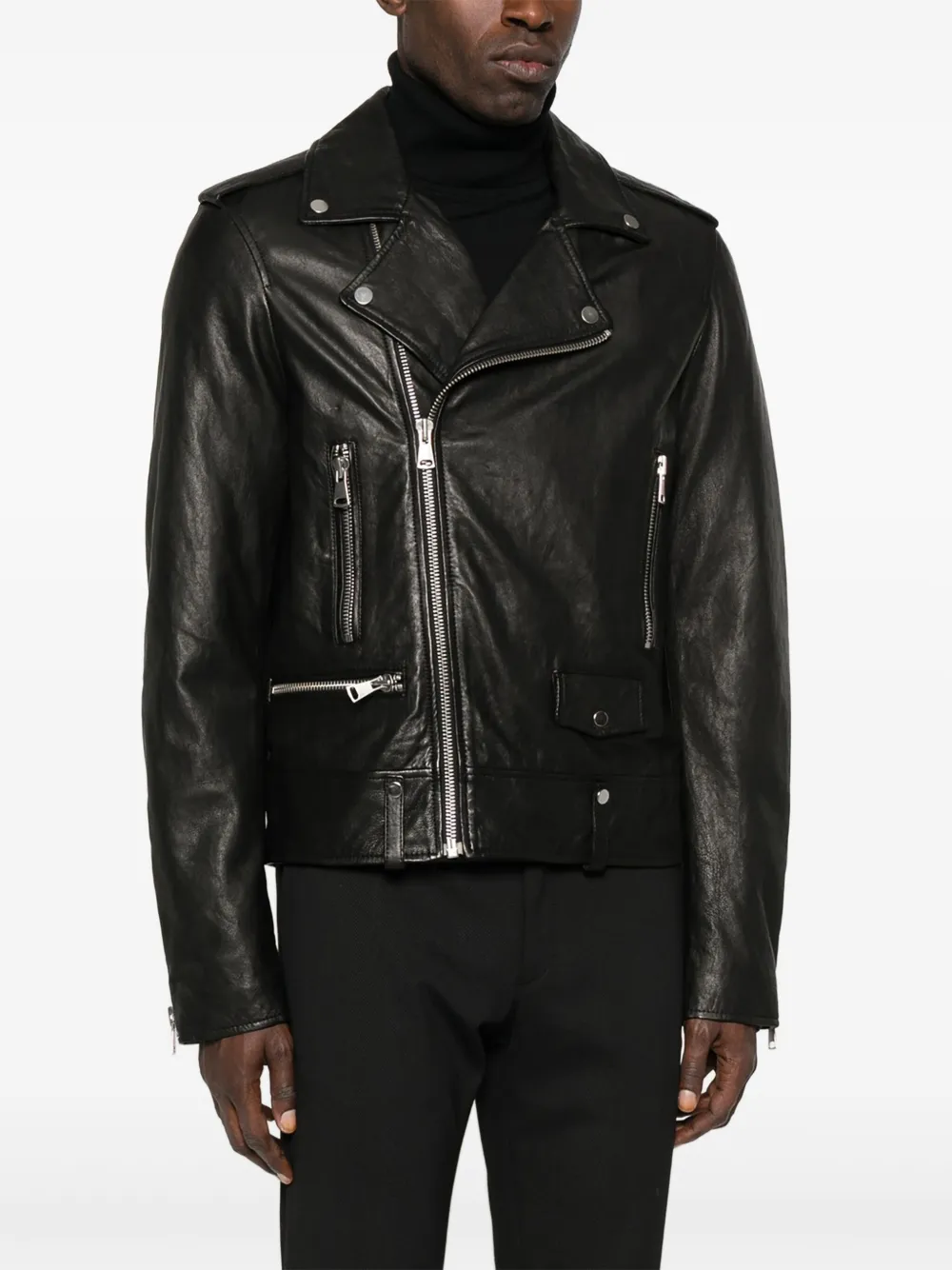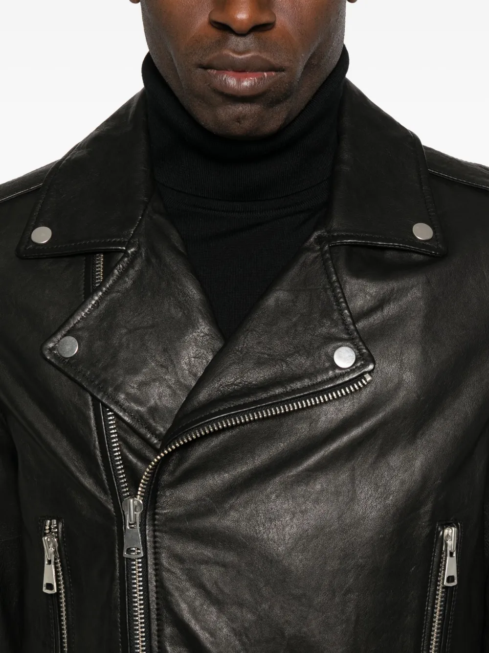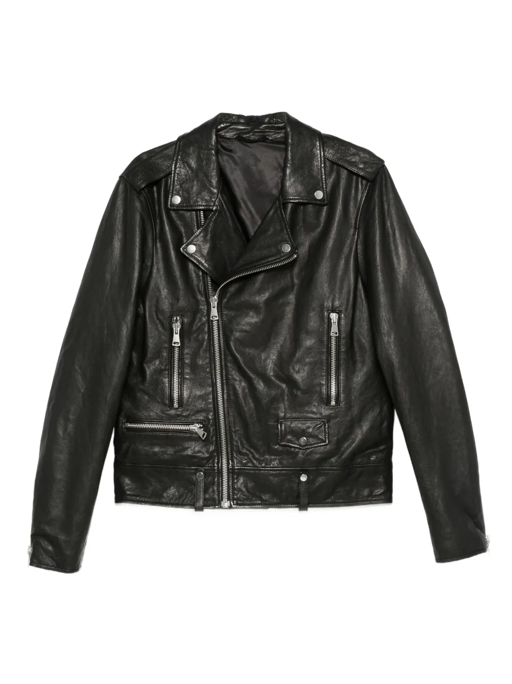 Черный кожа асимметричная застежка-молния длинные рукава боковые карманы на молнии
