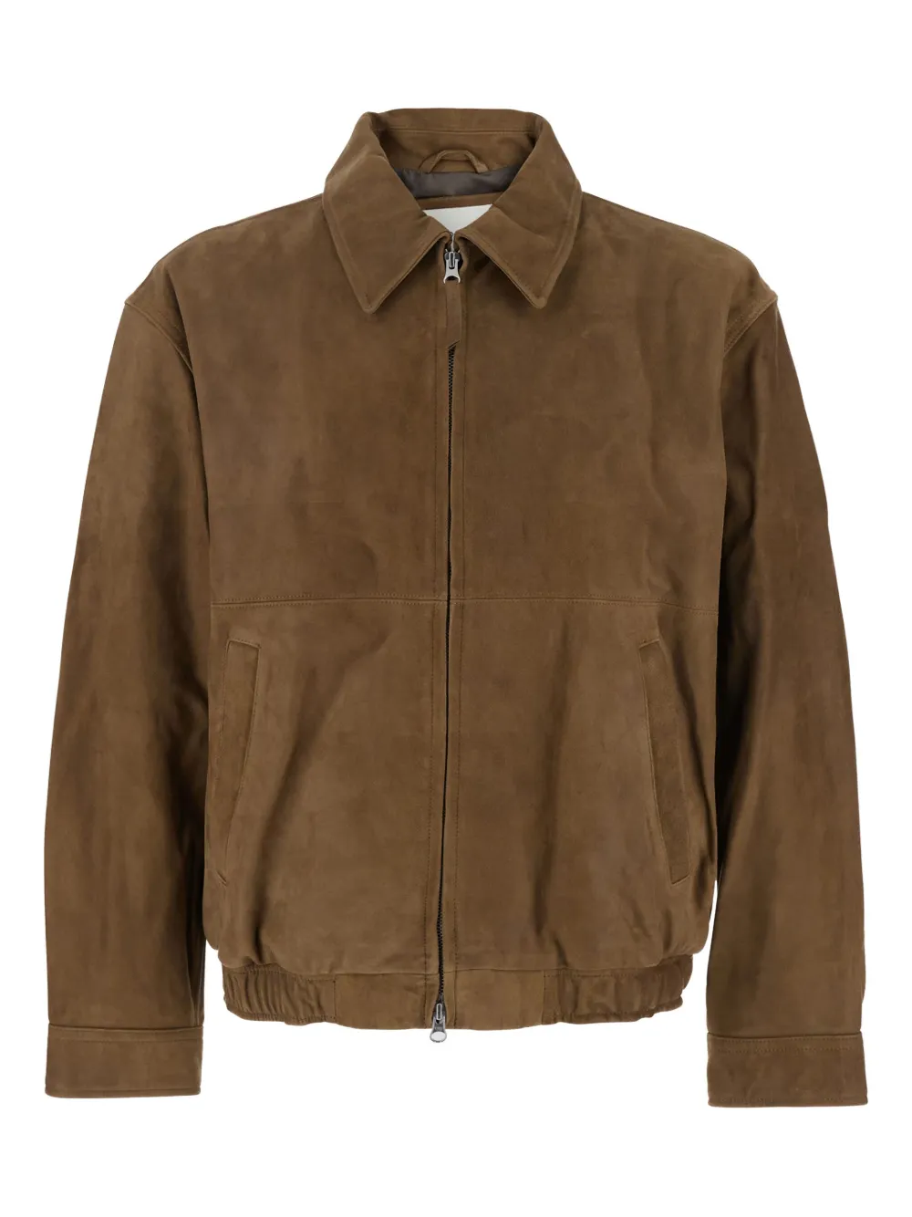 Коричневая замша, текстурированная поверхность, застежка-молния, прорезные карманы