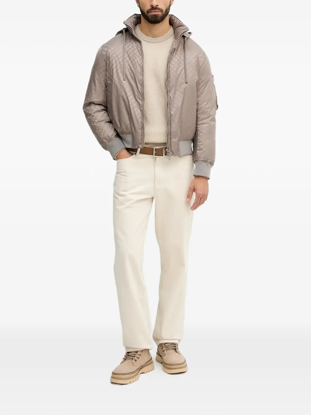 Светло-коричневый, принт с логотипом, застежка-молния, ребристый низ, длинные рукава, капюшон