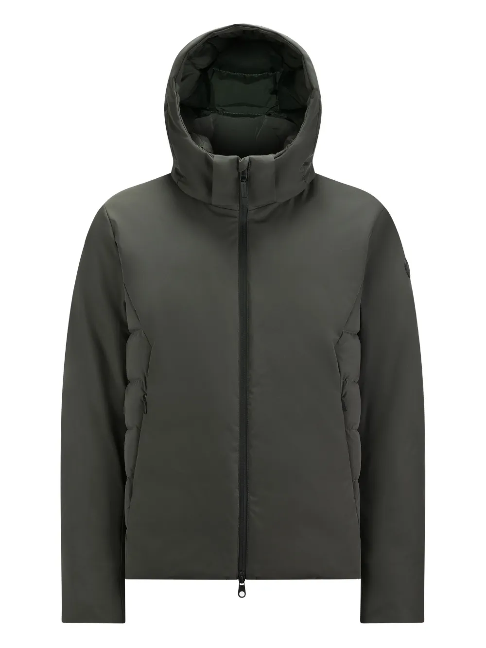 Темно-зеленый стеганый дизайн капюшон застежка на молнии длинные рукава боковые карманы