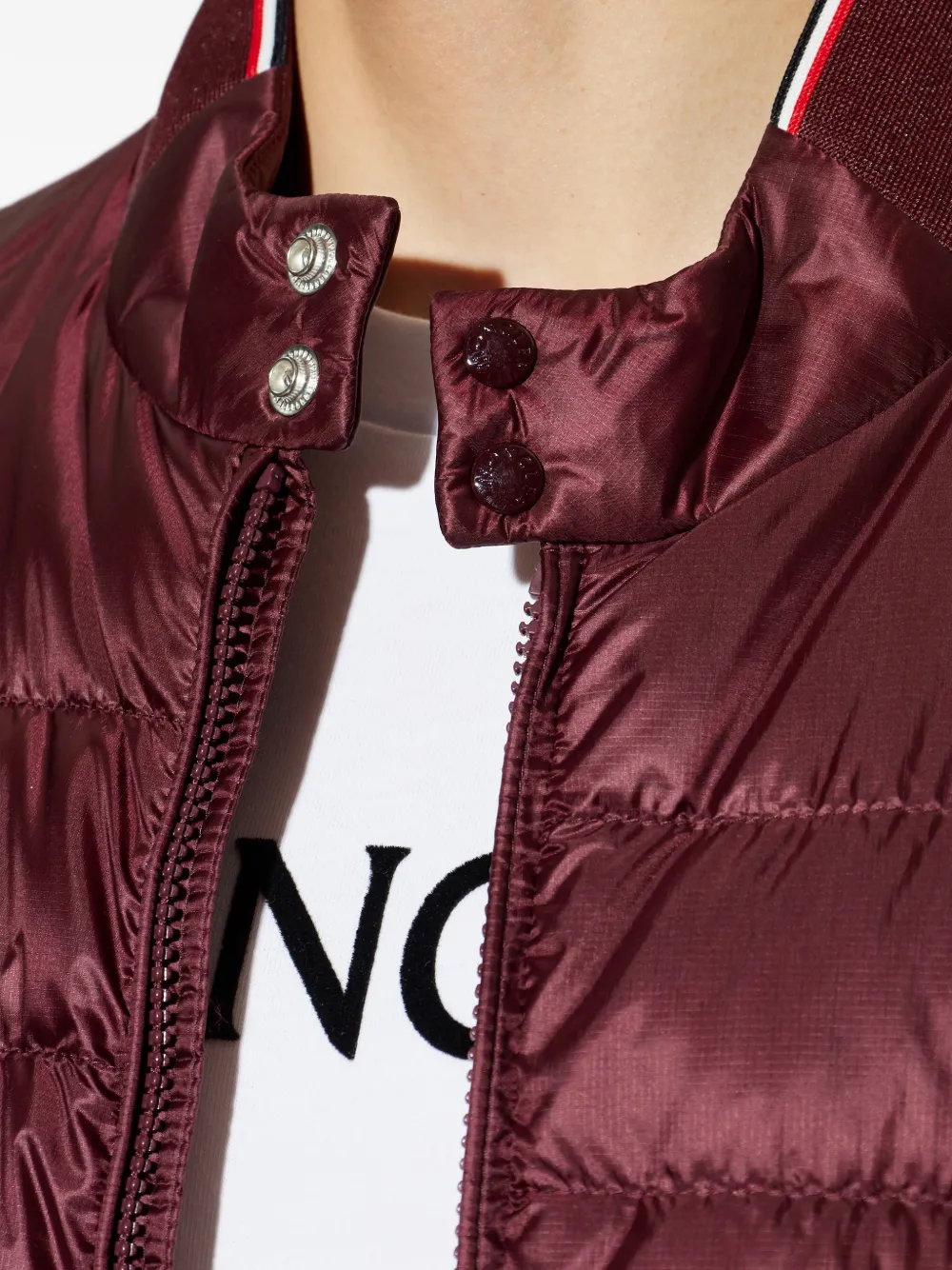 Бордовый стеганый дизайн, застежка на молнию, детали с кнопками, ребристые манжеты