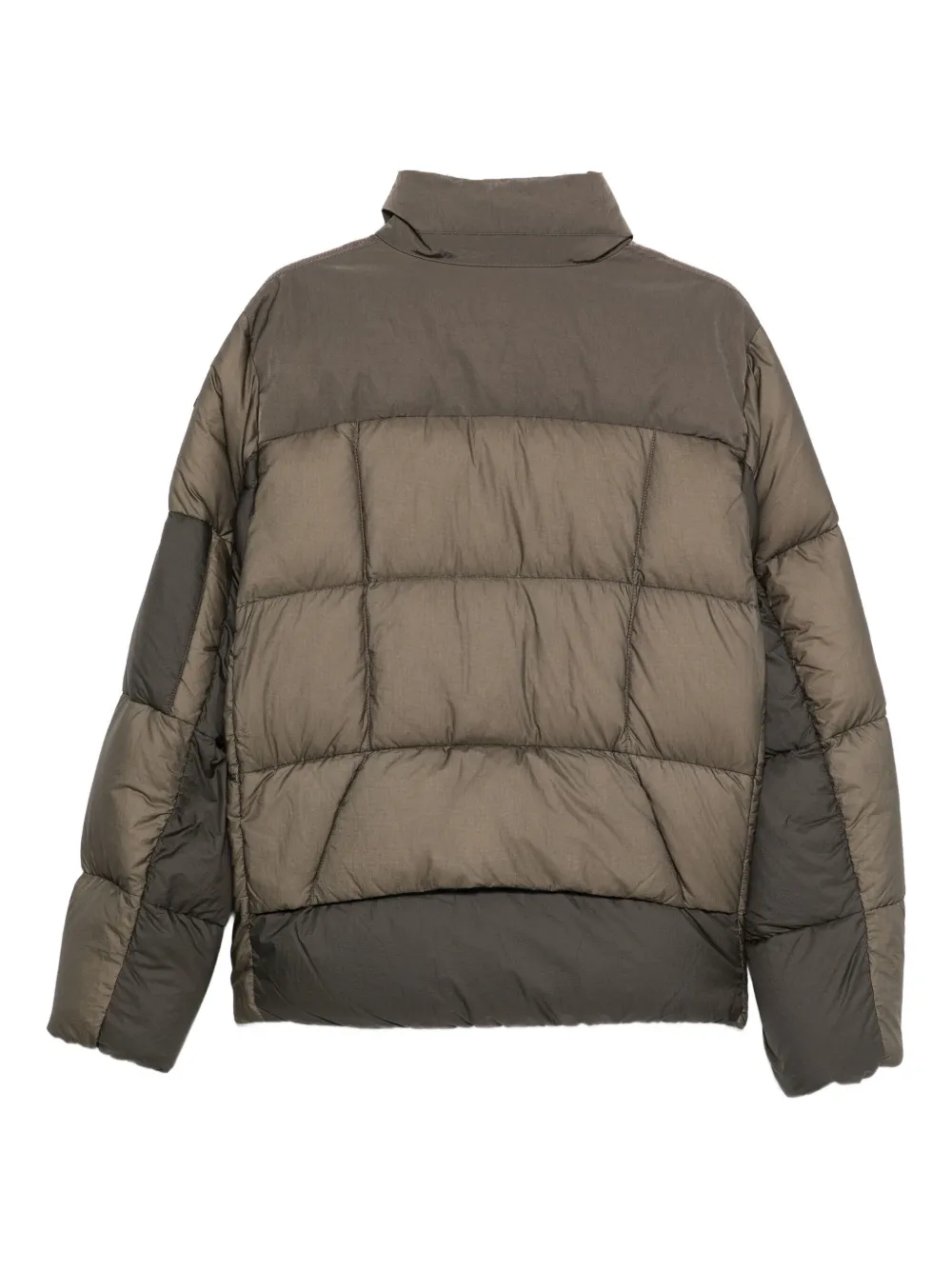 Темно-оливковый стеганые вставки высокий воротник застежка-молния спереди регулируемый подол на кулиске