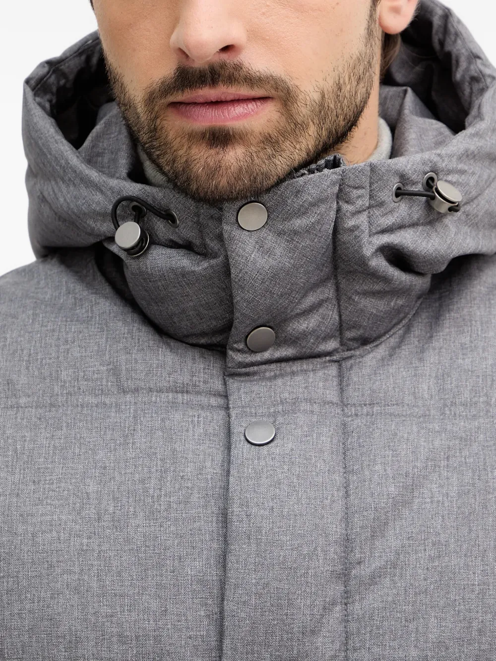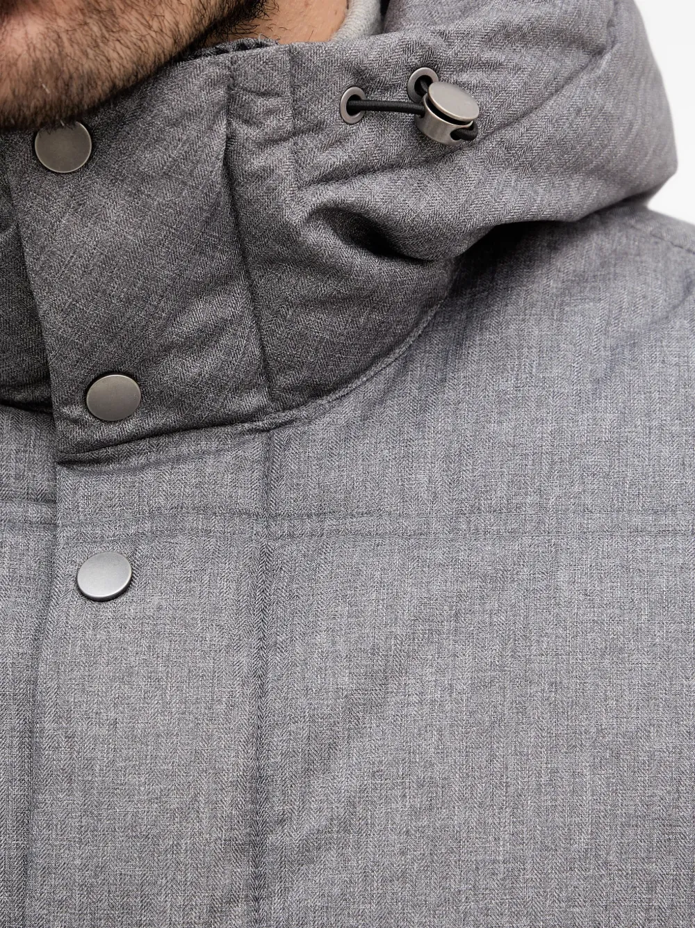 Серый стеганый дизайн, застежка на пуговицы, капюшон, шнурок для регулировки, кнопки