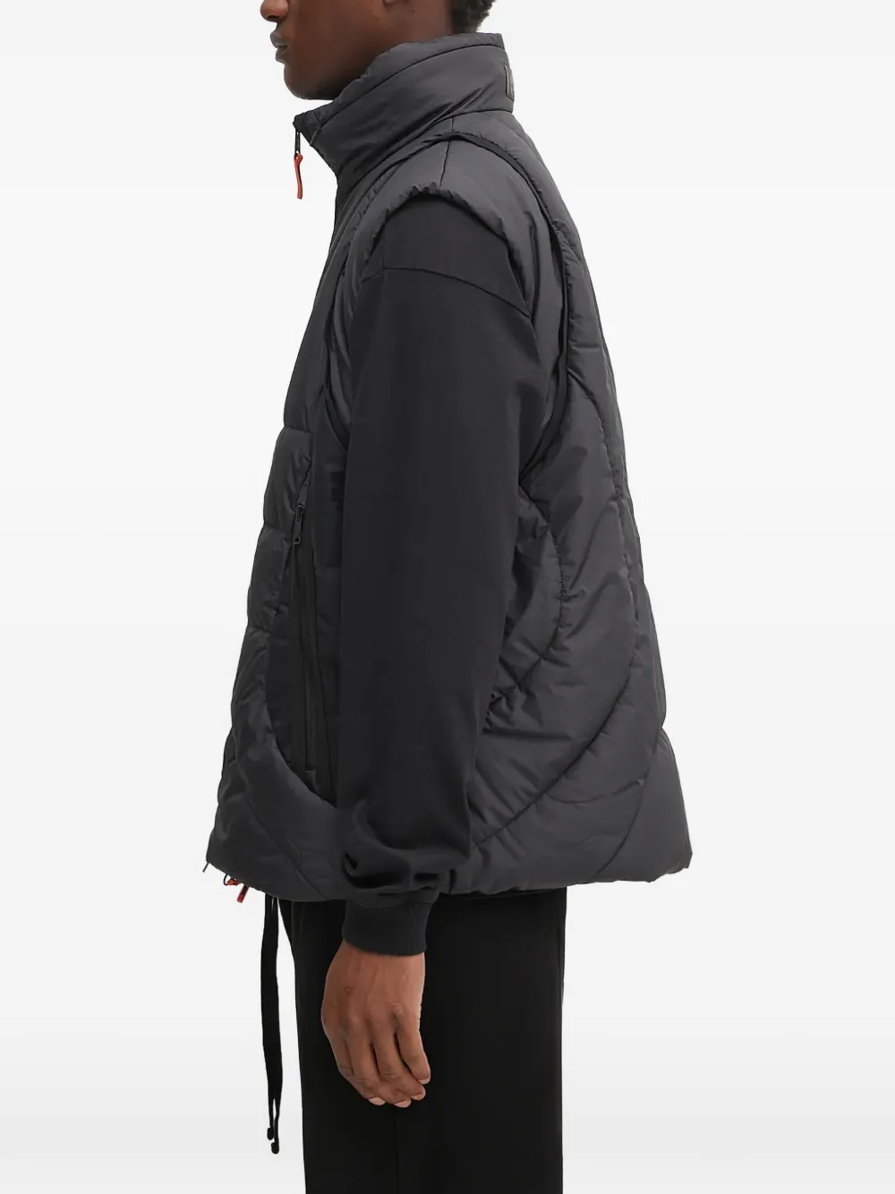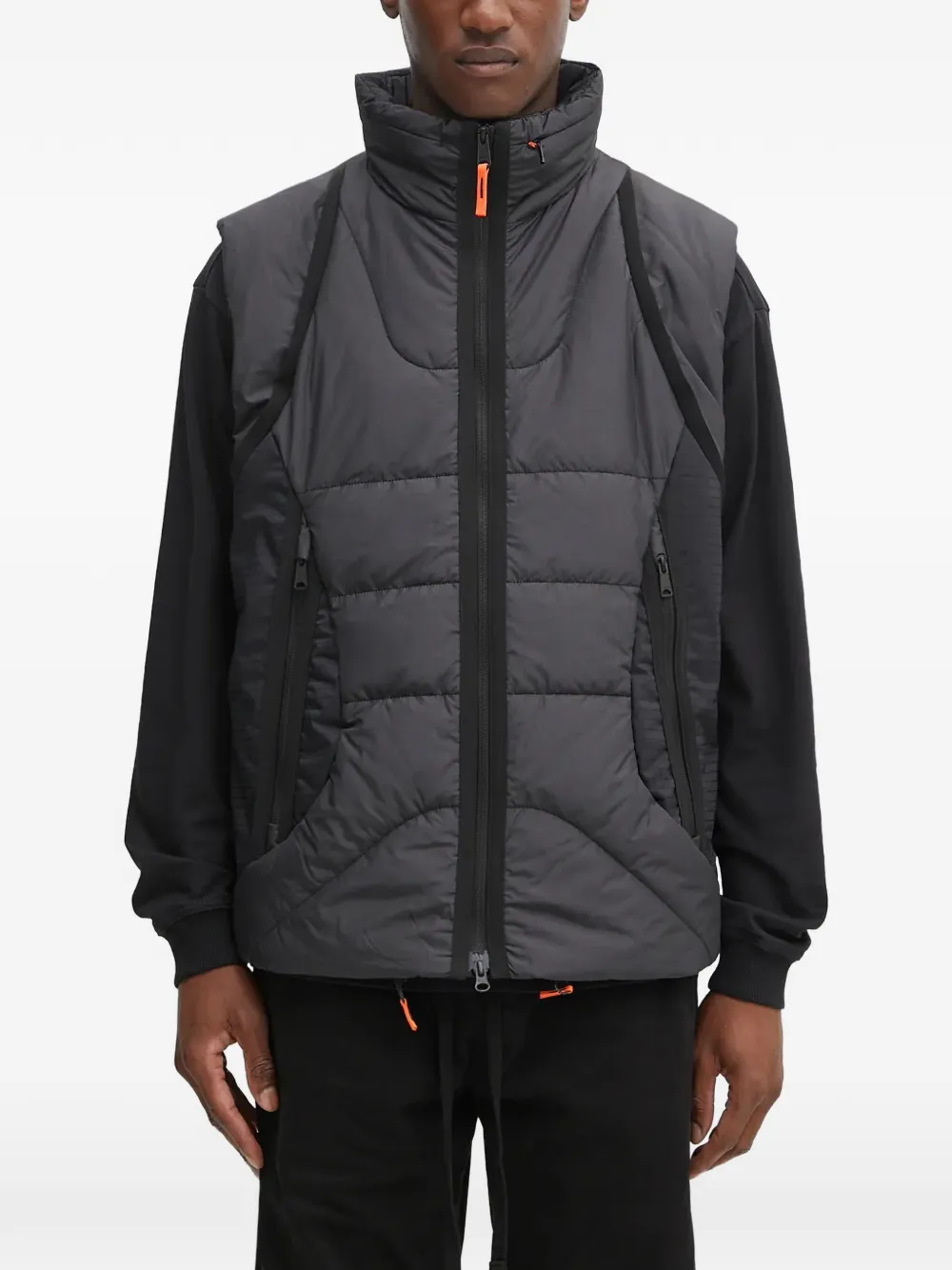 Серый стеганый худи на молнии с круглой нашивкой-логотипом и прорезными карманами