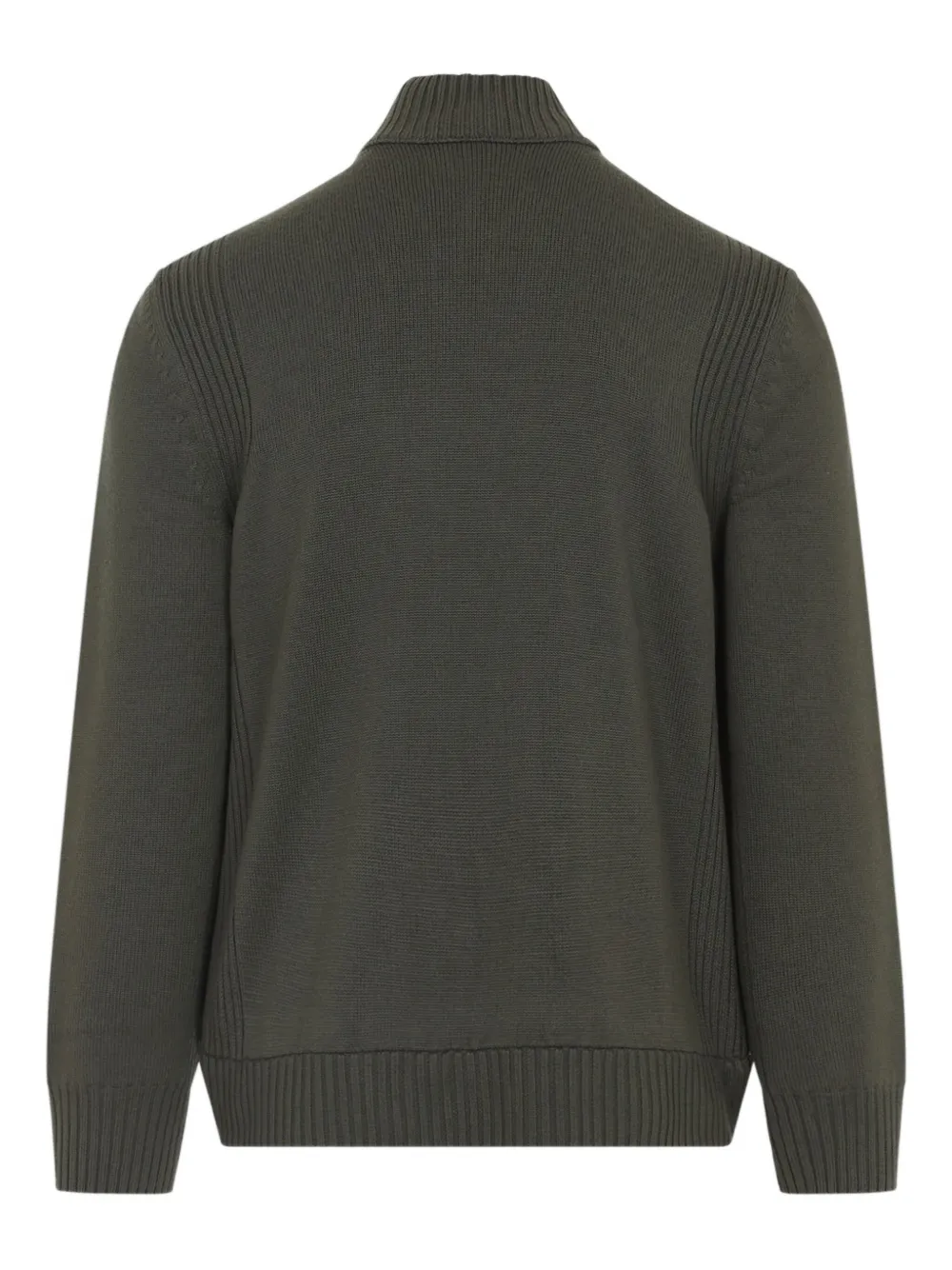 Военный зеленый, стеганая передняя часть, застежка на молнии, нашивка с логотипом, рубчатые отделки, высокий воротник