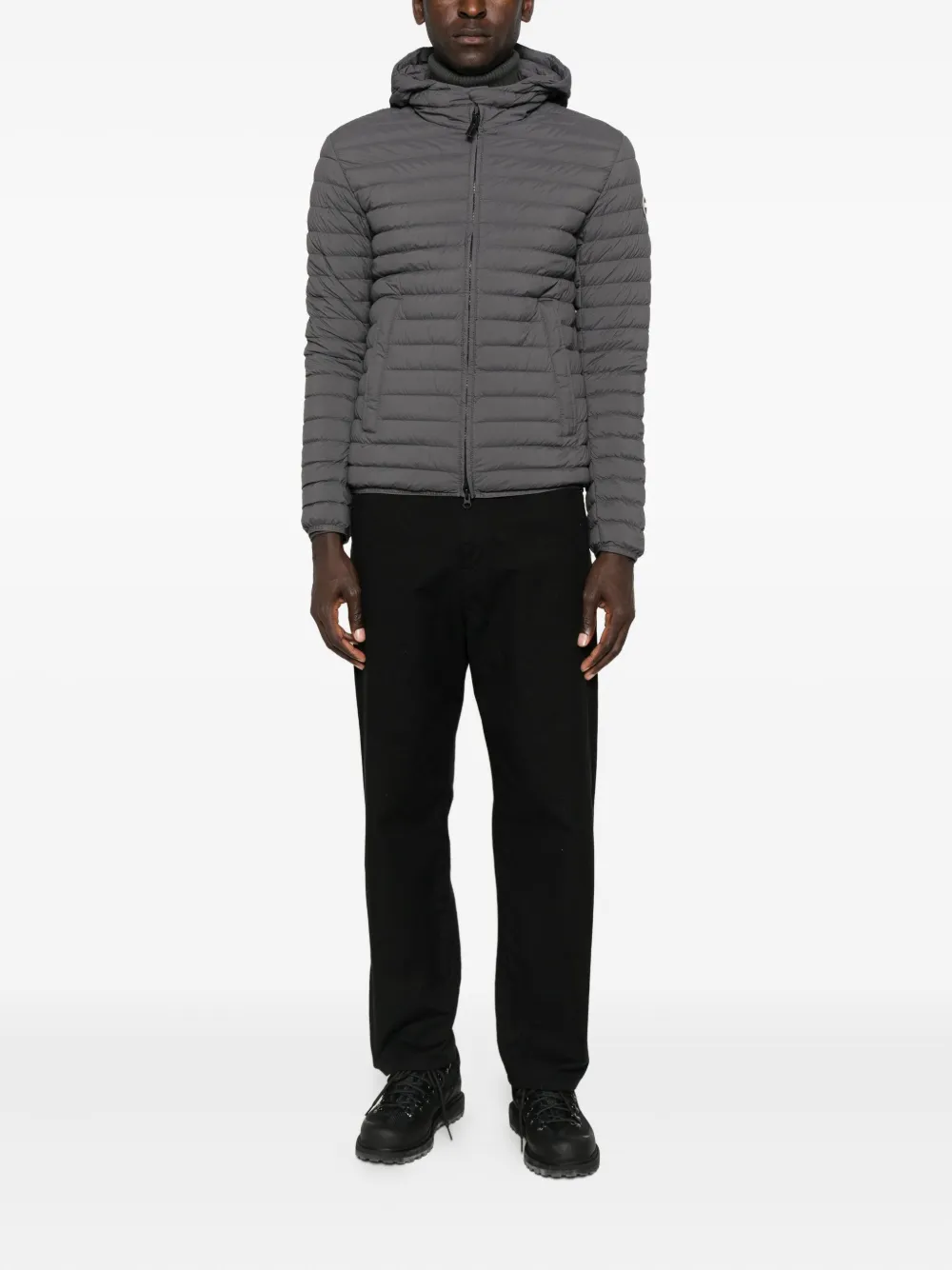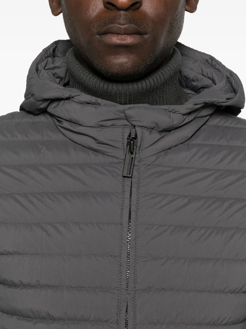 Темно-серый стеганый дизайн классический капюшон застежка-молния спереди длинные рукава прорезные карманы