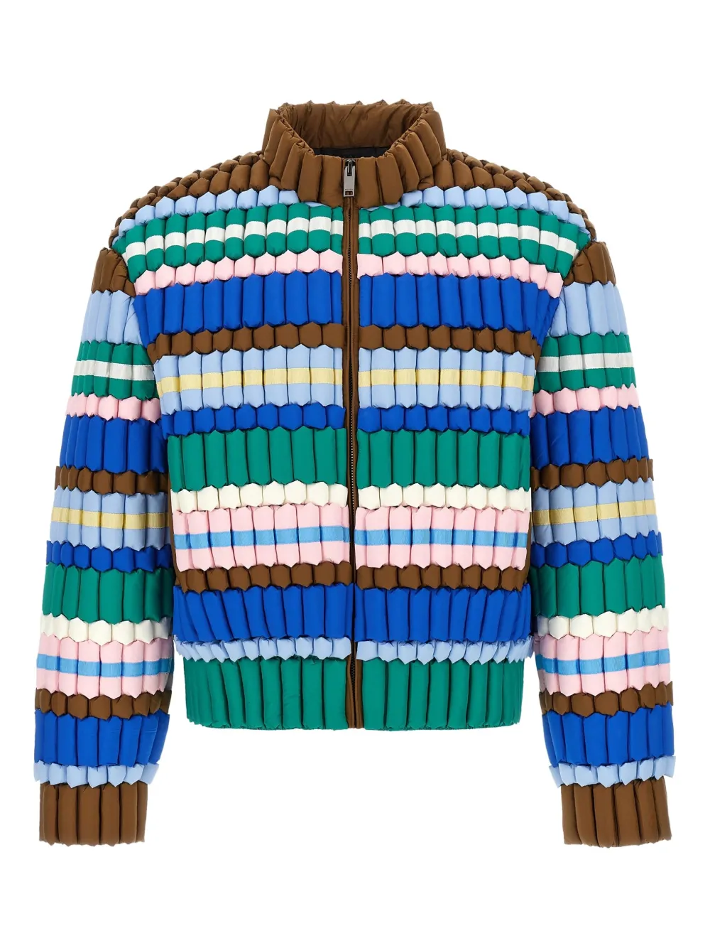 Многоцветный горизонтальный полосатый узор детали из тесьмы-гросгрейн застежка-молния спереди длинные рукава