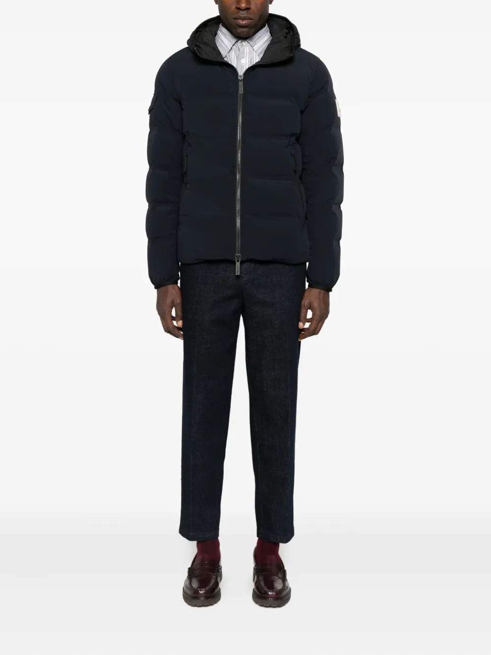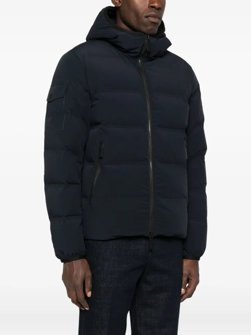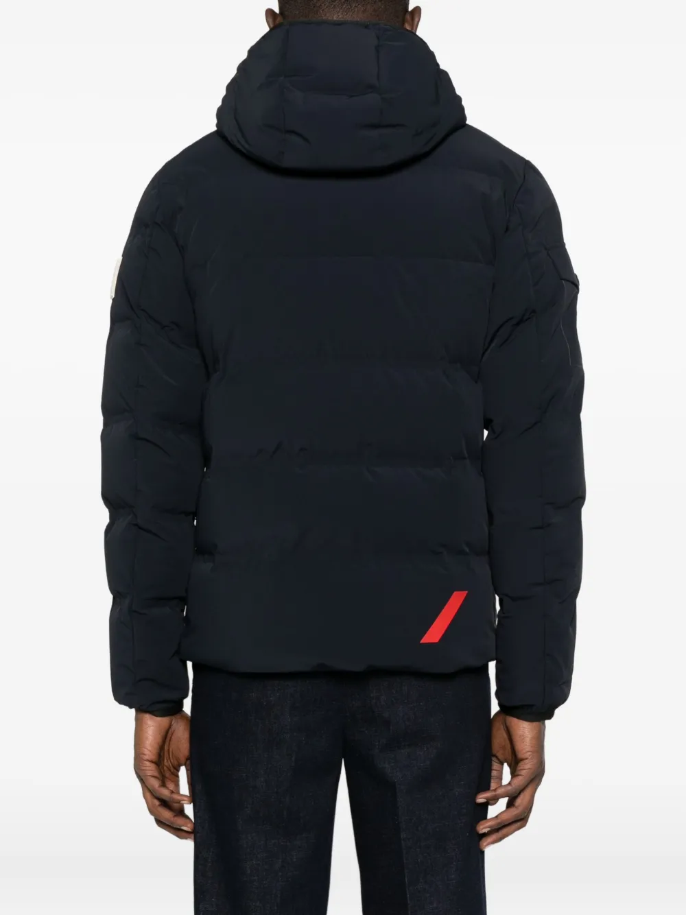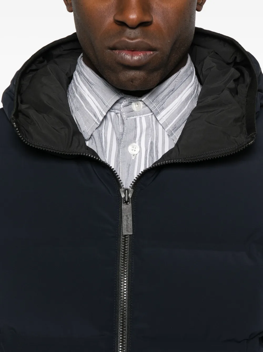 Темно-синий стеганый дизайн застежка-молния спереди боковые прорезные карманы пришитый капюшон логотип-нашивка