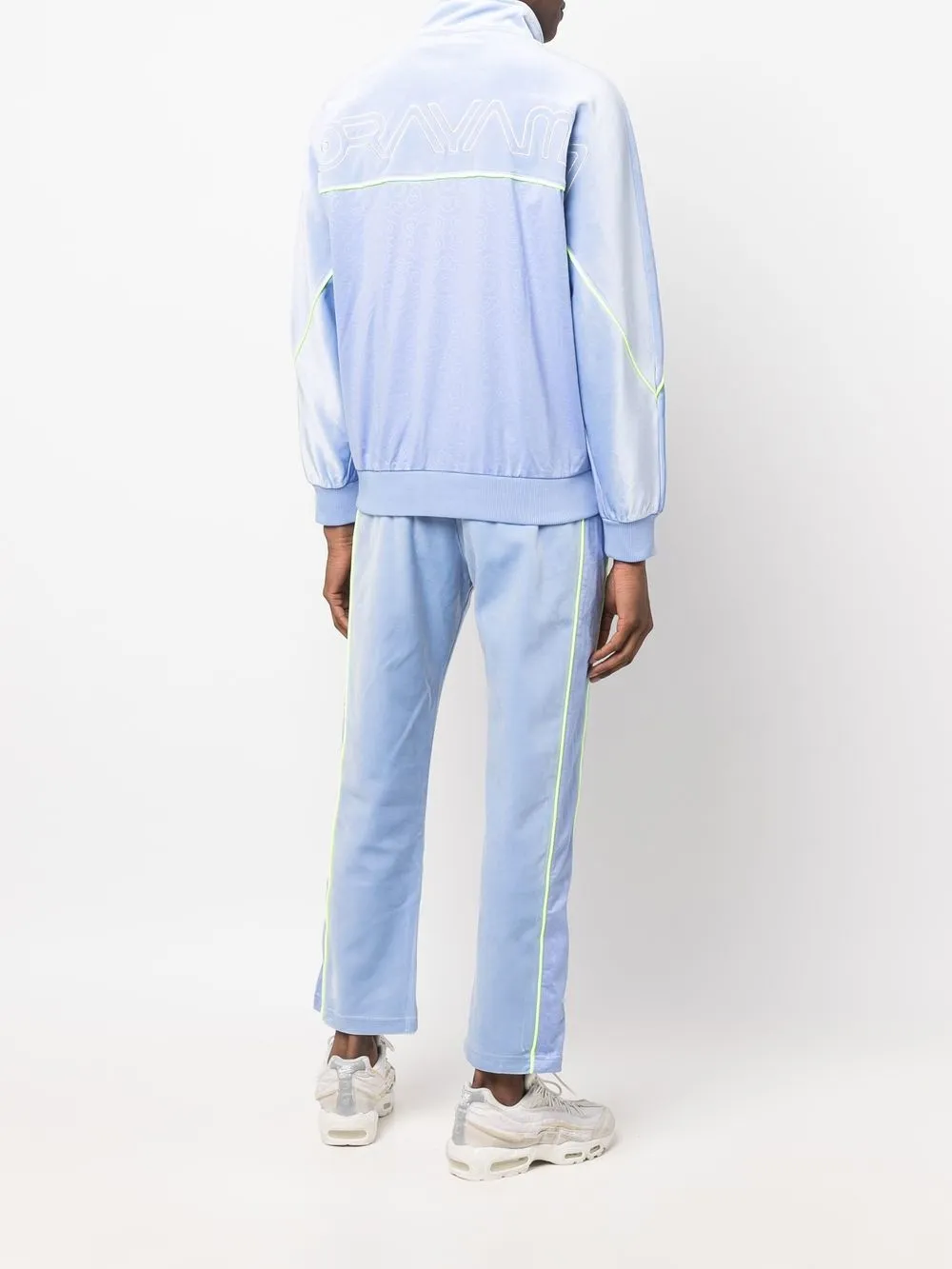 Вышитый логотип на груди, полоски, застежка на молнии спереди, длинные рукава, манжеты в рубчик и подол в рубчик.