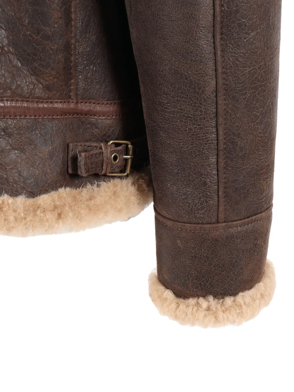 Коричневый воротник из овчины застежка-молния спереди боковые ремешки с пряжками прорезные карманы