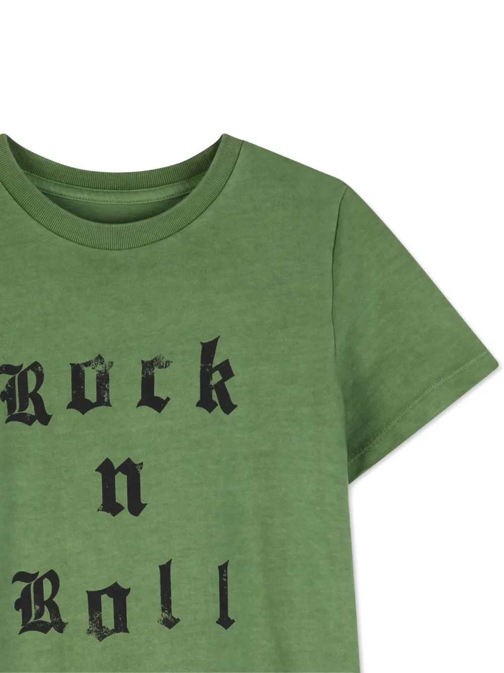 Зеленая футболка с круглым вырезом и принтом, короткие рукава