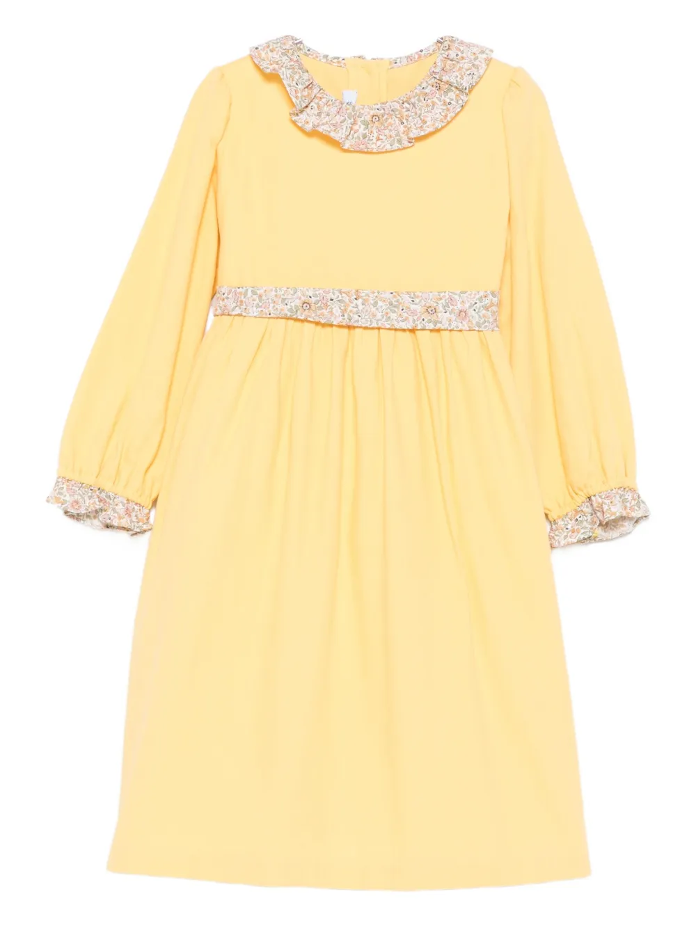 Желтый оборчатый воротник лента с цветочным принтом длинные рукава оборчатые манжеты