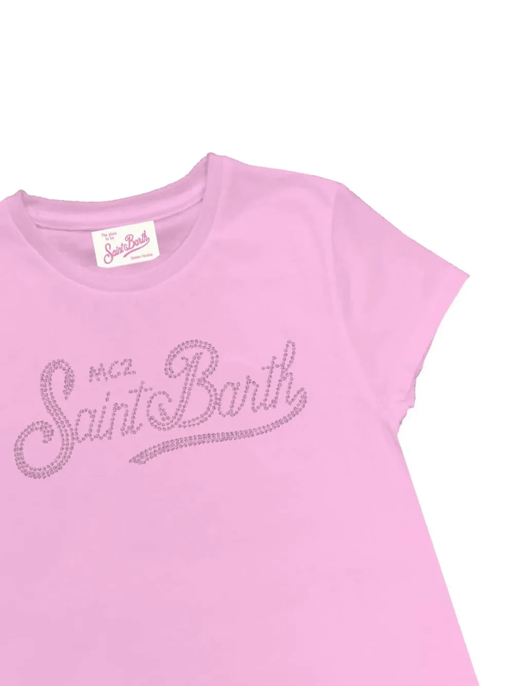 Платье с оборками и стразами Mc2 Saint Barth Kids, розовый