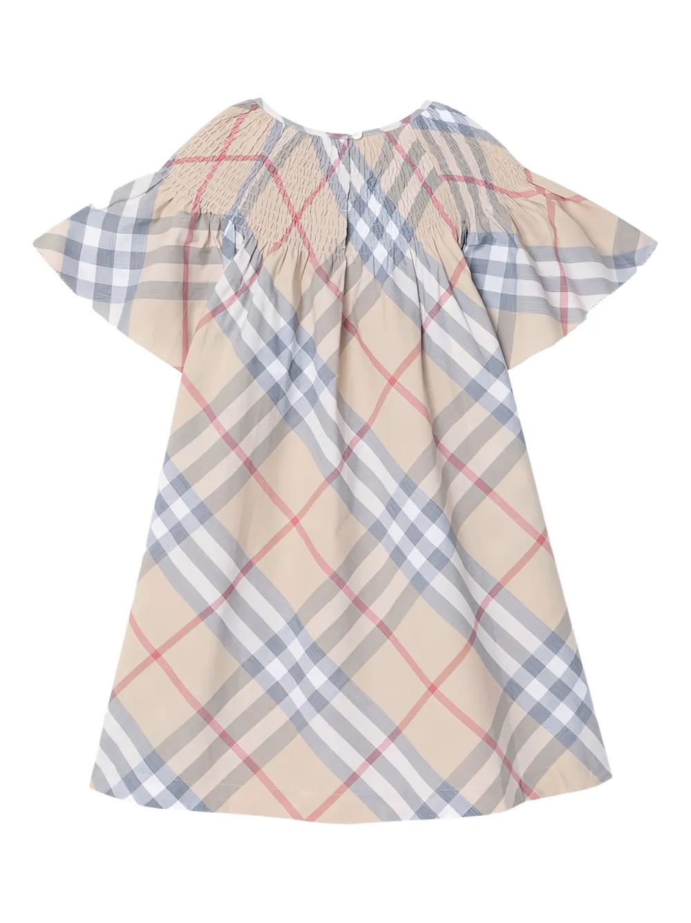Клетчатое платье со сборками Burberry Kids, нейтральный