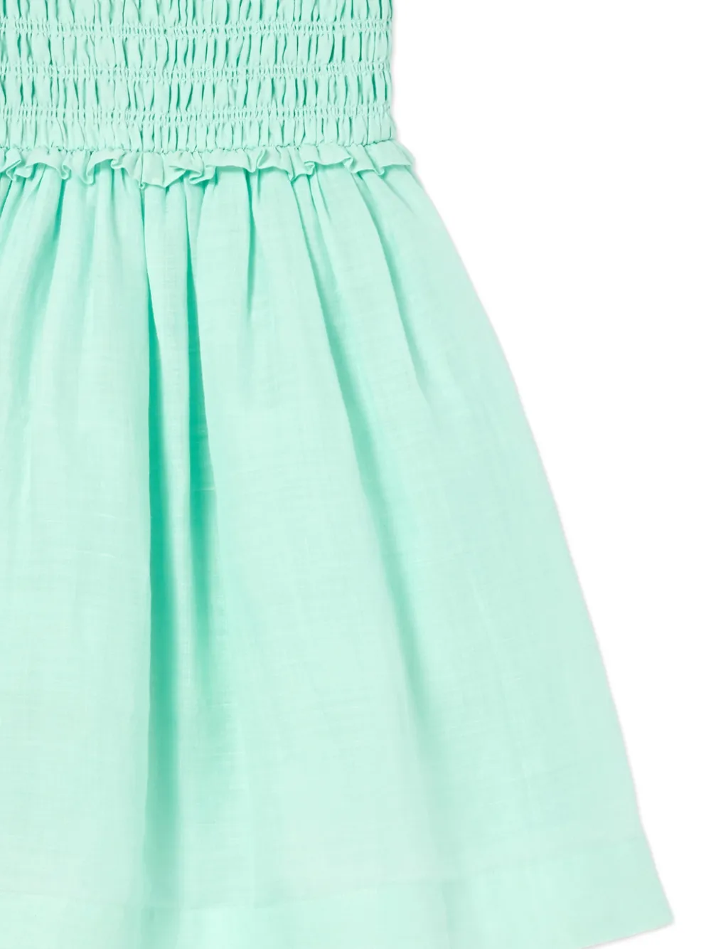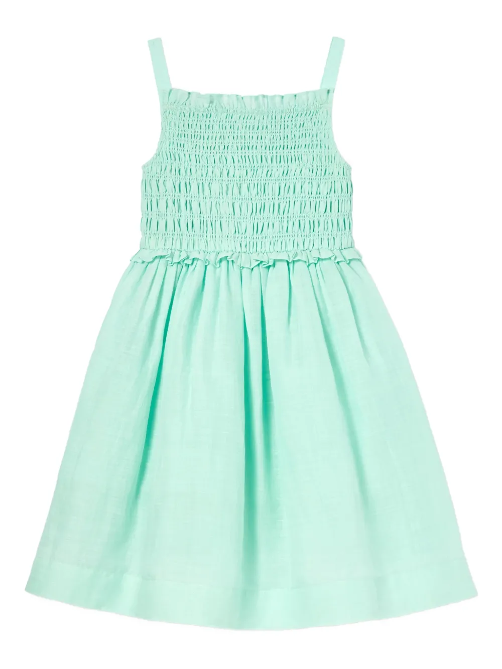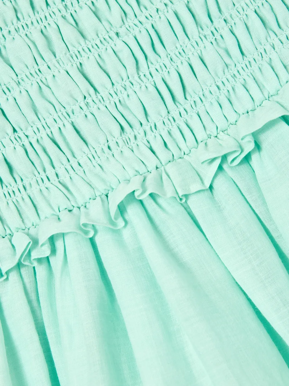 Мятно-зеленое платье без рукавов с квадратным вырезом, сборкой на лифе и оборками по краю, А-силуэта