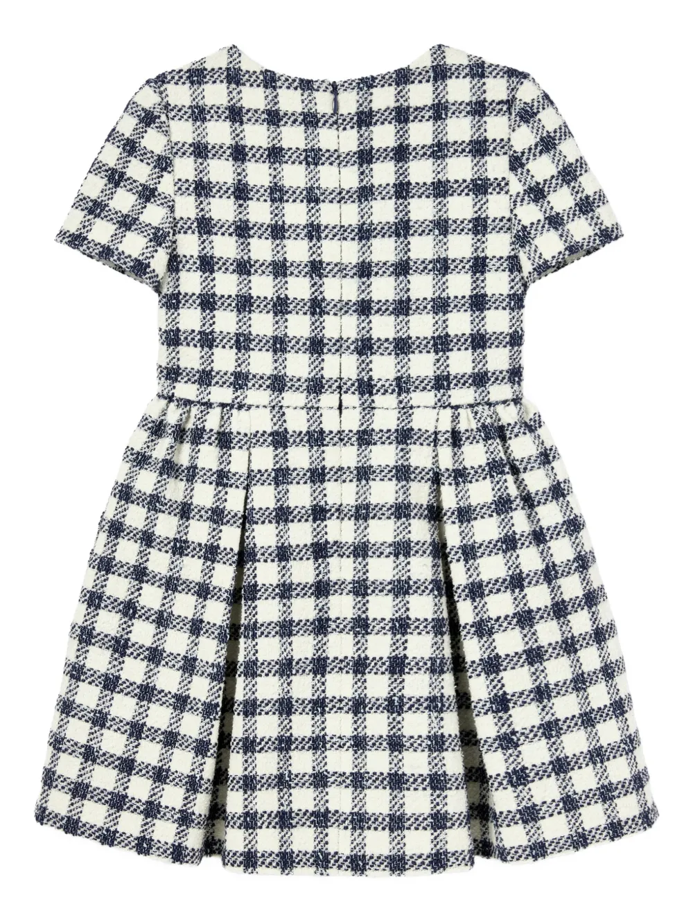 Юбка в клетку темно-синего цвета, плиссированная, с бантиком, с короткими рукавами, круглый вырез