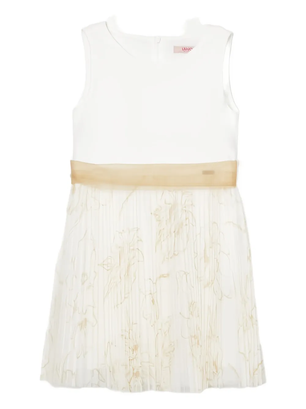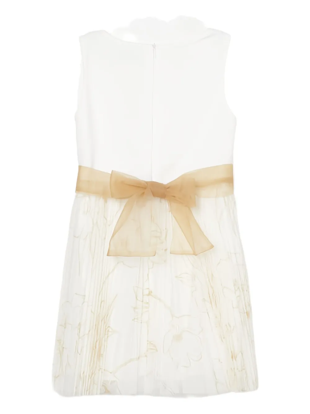 Белая плиссированная юбка с цветочным принтом, бант, без рукавов, круглым вырезом