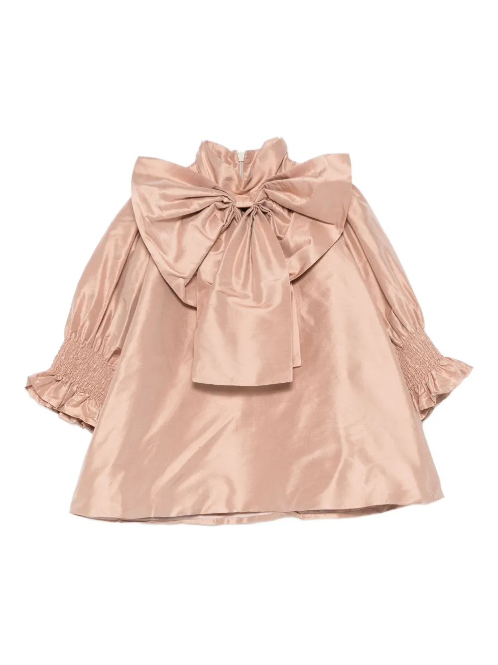 Розовый детали в виде банта оборчатые манжеты высокий ворот длинные рукава застежка-молния сзади