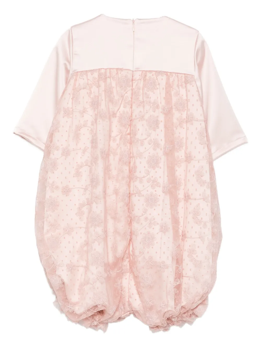 Розовый цветочный узор, бантовый декор, короткие рукава, круглый вырез, застежка-молния сзади