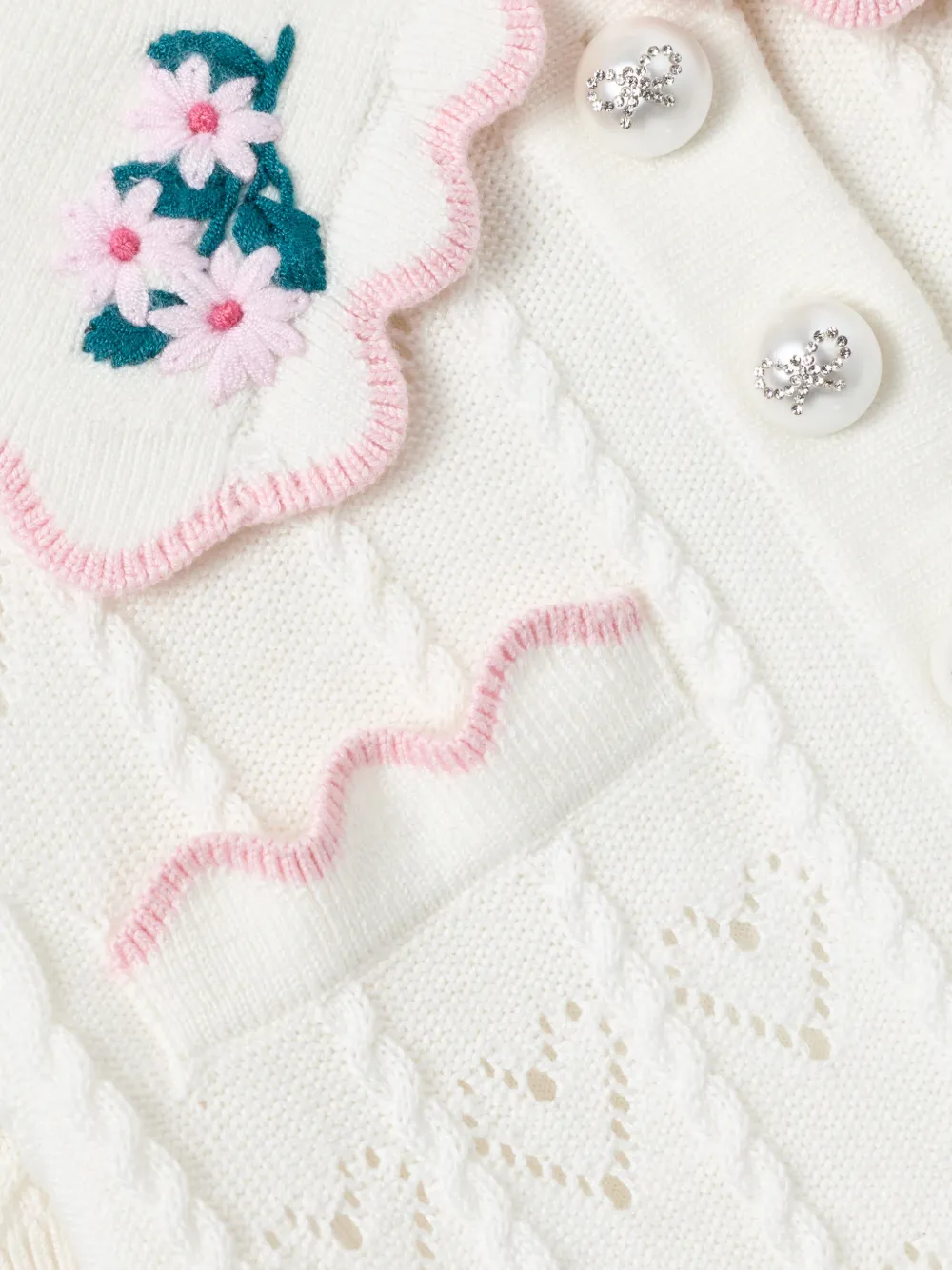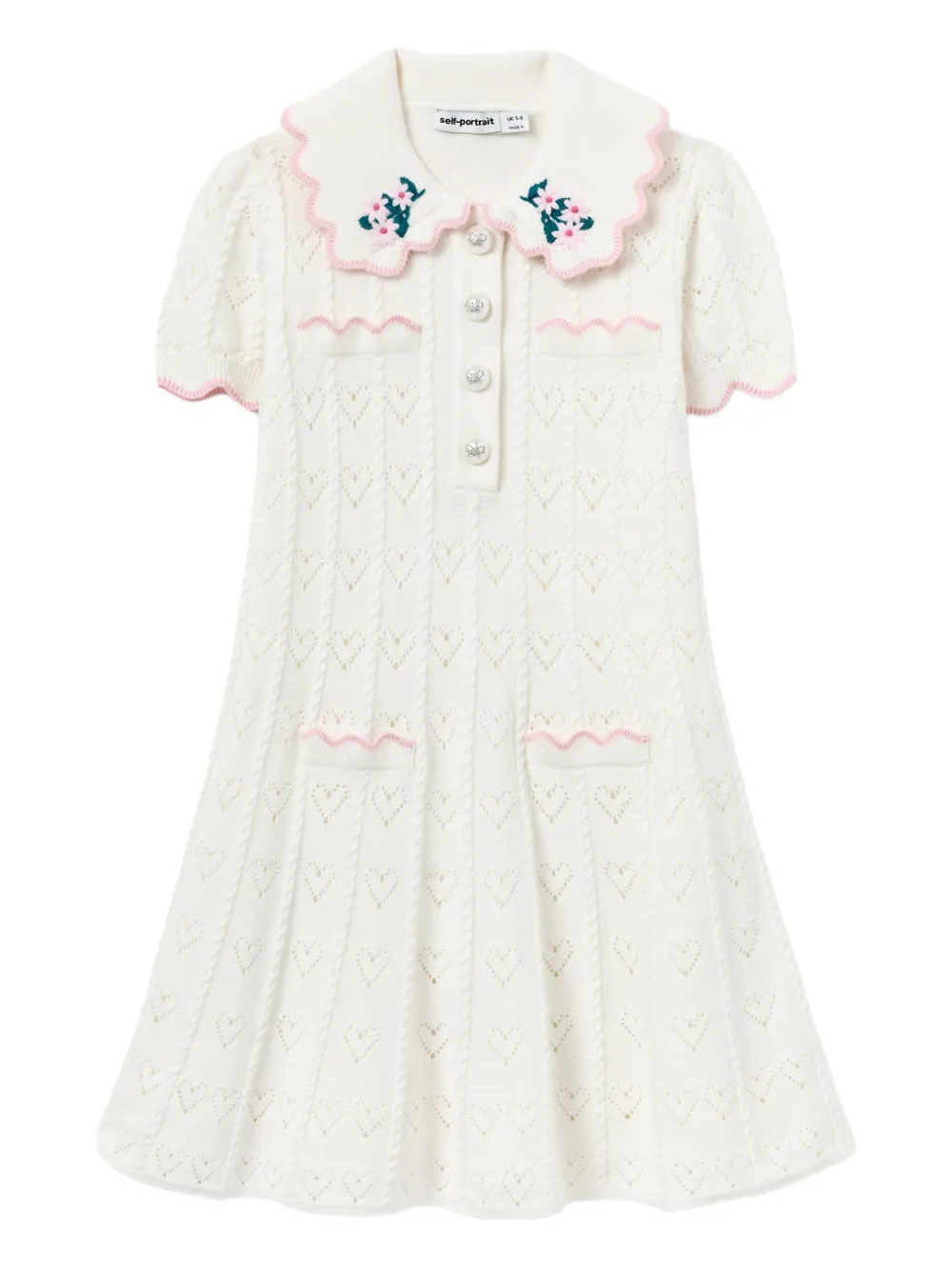 Ажурное платье с зубчатым краем Self-Portrait Kids, белый