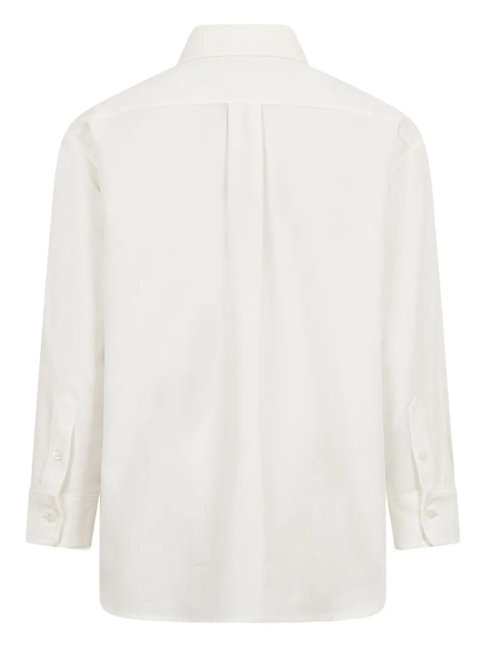 Кремовый цвет, нагрудный карман, логотип, застежка на пуговицы, длинные рукава, манжеты на пуговицах