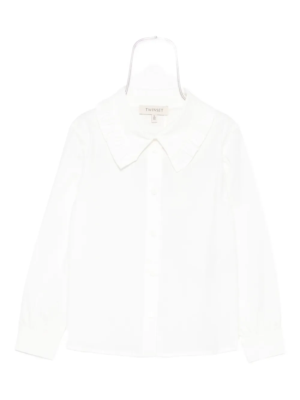 Белыйоборчатый воротникзастежка на пуговицы спередидлинные рукава