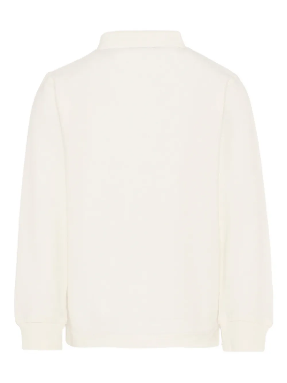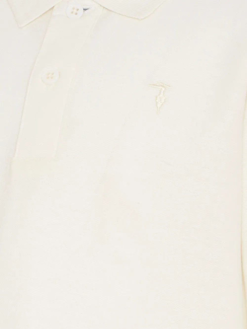 Айвори, воротник поло, застежка на пуговицах, длинные рукава, вышитый логотип, ребристые манжеты