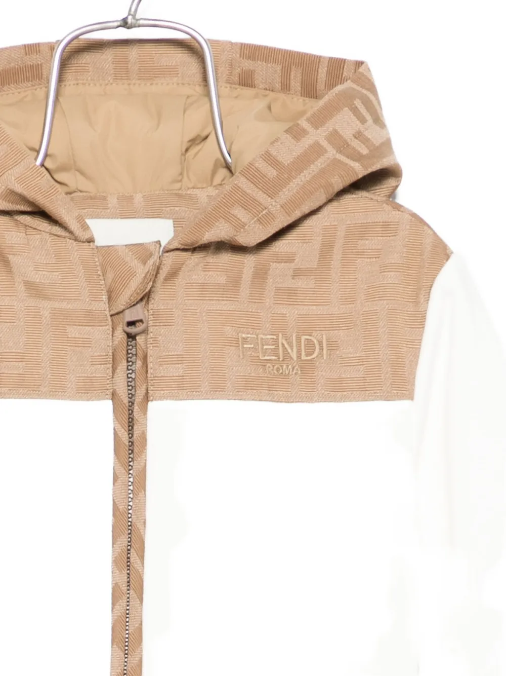 Белый узор с логотипом FF застежка-молния капюшон длинные рукава двухцветный дизайн