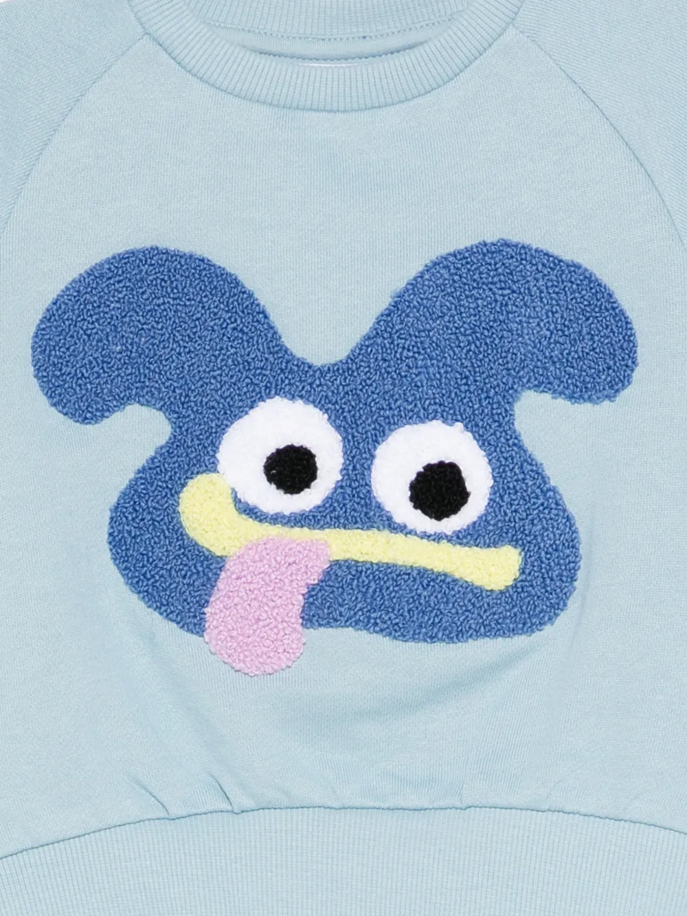 Светло-голубой свитшот с аппликацией, длинными рукавами, круглым вырезом, эластичными манжетами и звездным декором