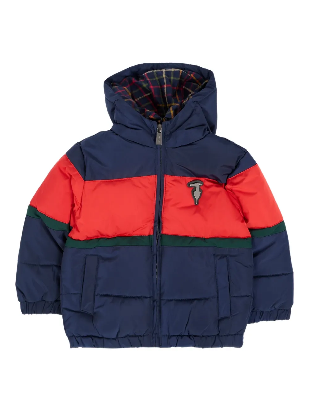 Пуховик в стиле колор-блок Trussardi Junior, синий