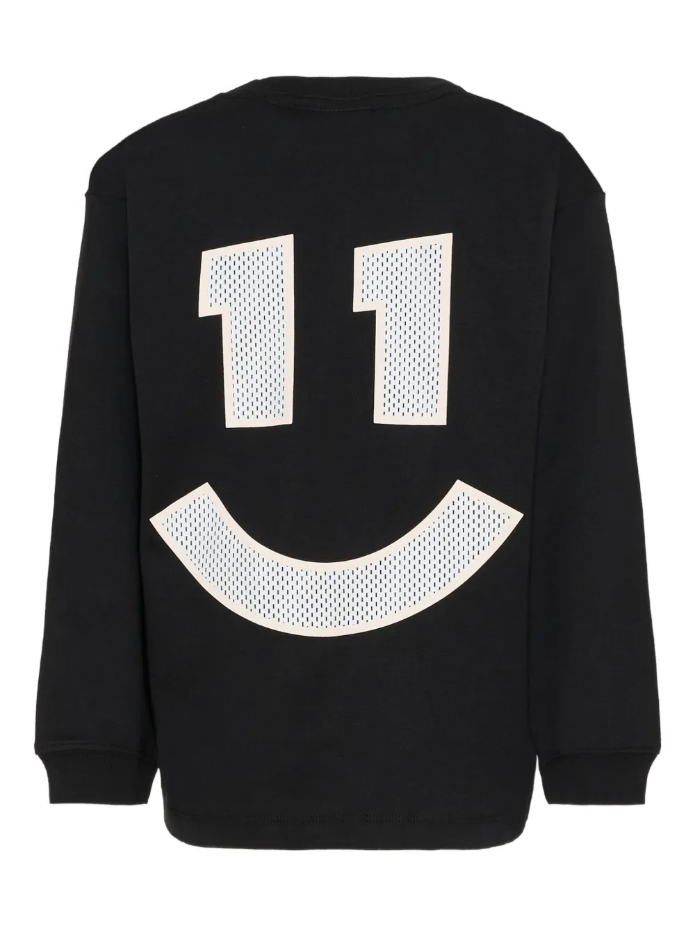 Черный лонгслив с принтом в виде цифр и смайлика, круглый вырез