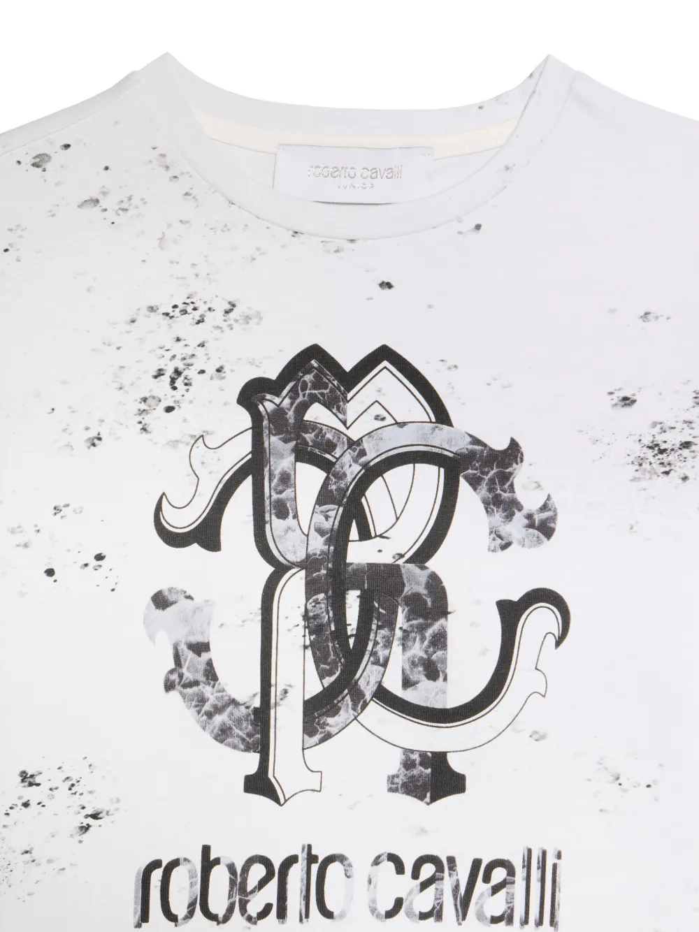 Футболка с мраморным эффектом и монограммой Roberto Cavalli Junior, белый 15 708₽