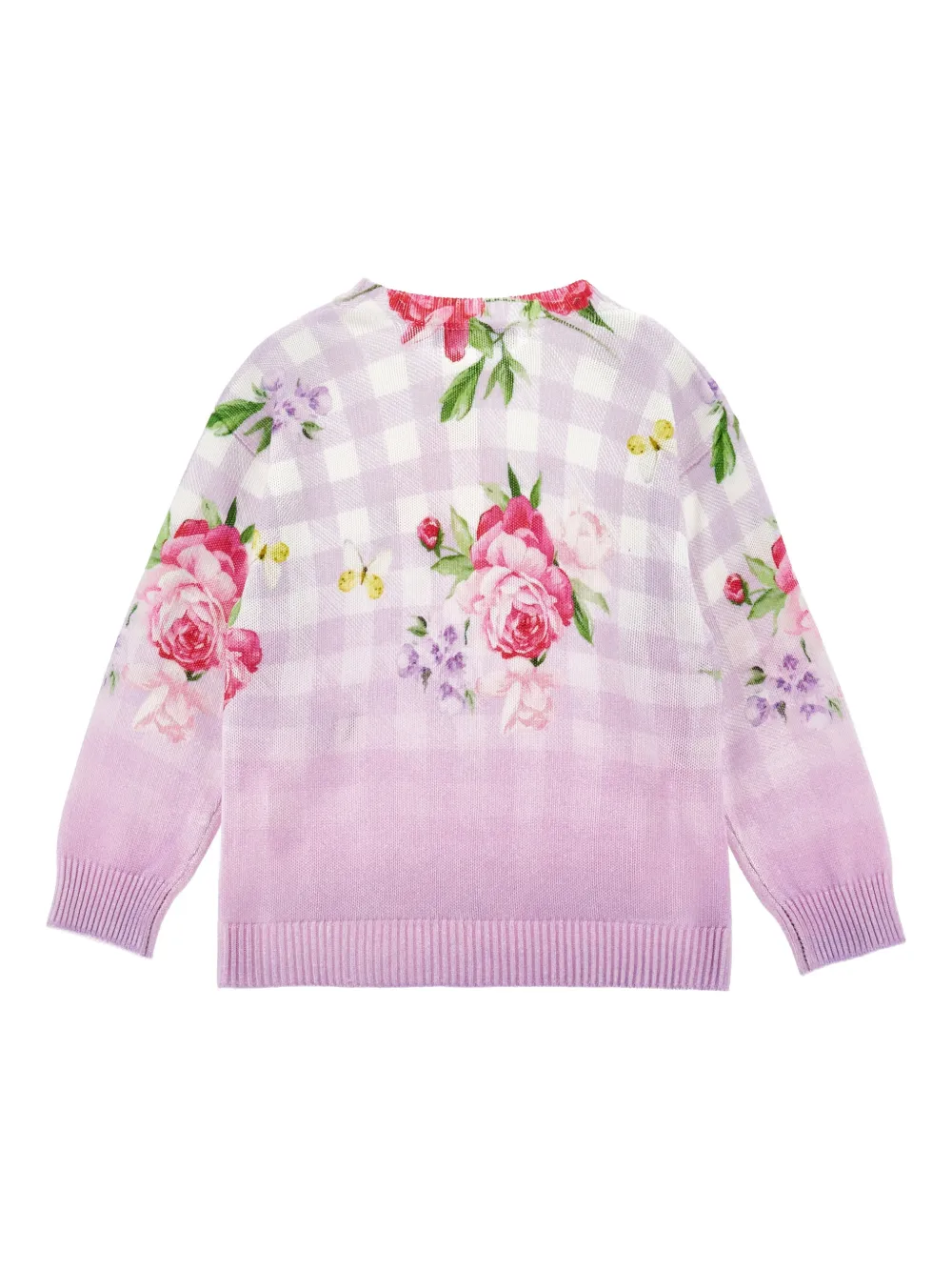 Свитер в клетку гингем Monnalisa, фиолетовый