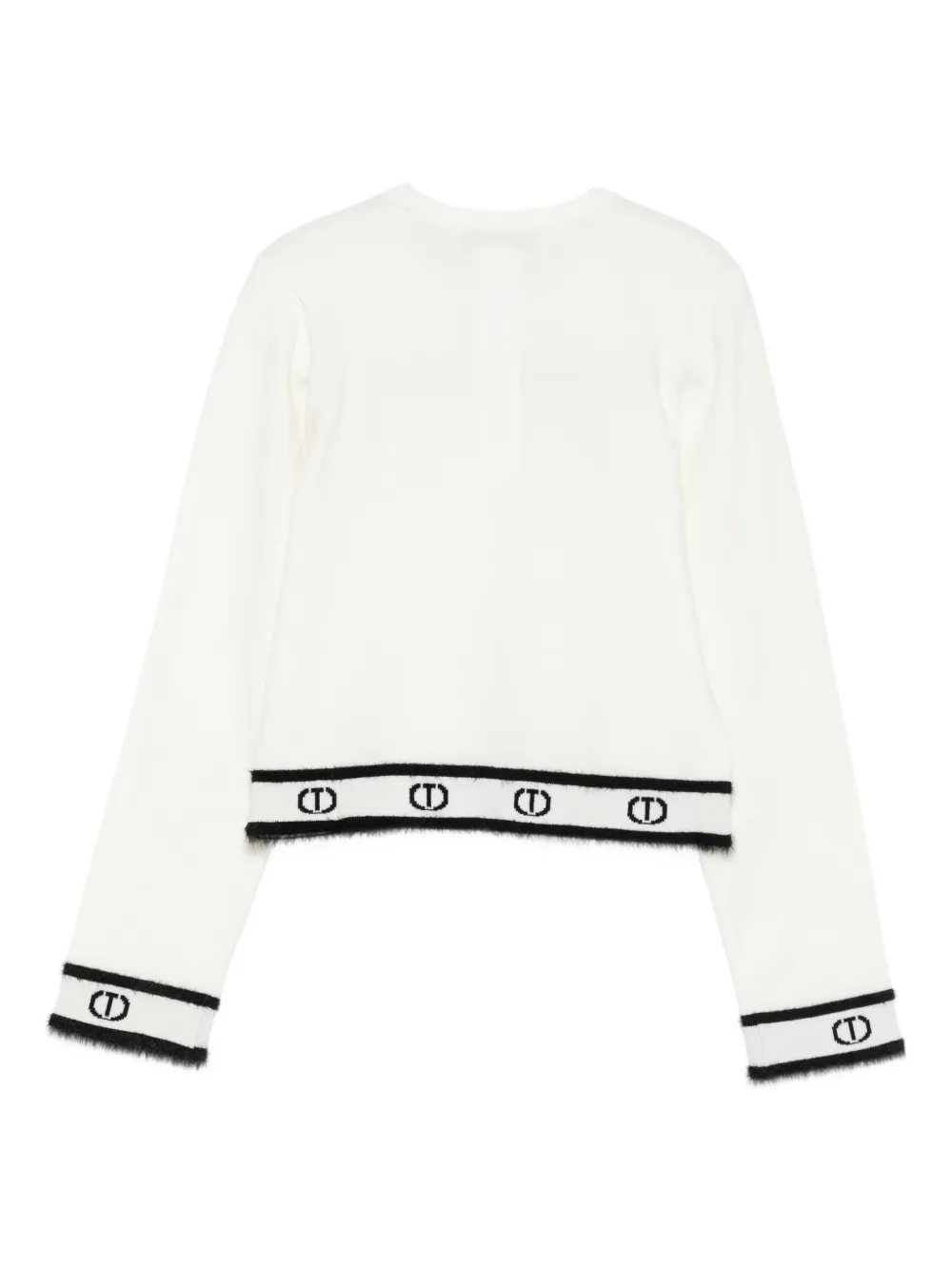 Белый/черный декор пуговицами детали с логотипом круглый вырез длинные рукава ребристый край