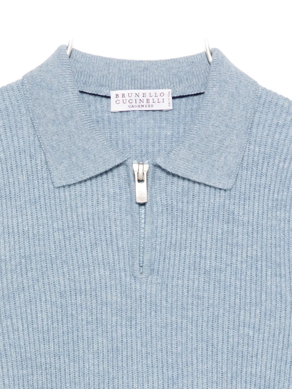 Свитер на молнии в рубчик Brunello Cucinelli Kids, синий