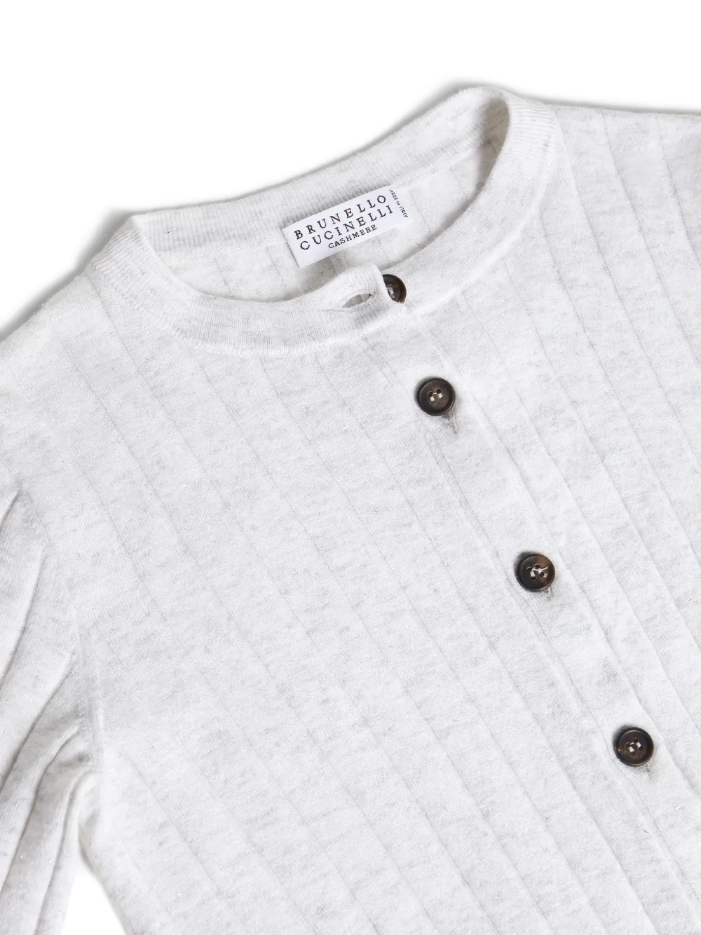 Кашемировый кардиган в рубчик Brunello Cucinelli Kids, серый