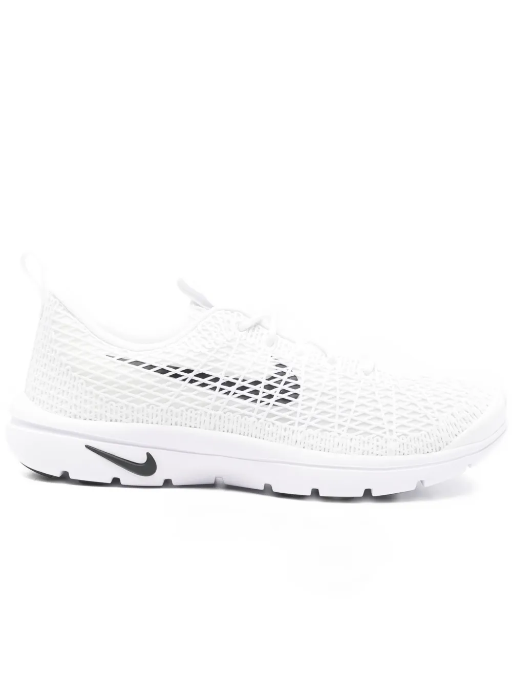 Белый цвет, логотип, завязки на шнуровке, петля на пятке, круглый мыс, плоская резиновая подошва