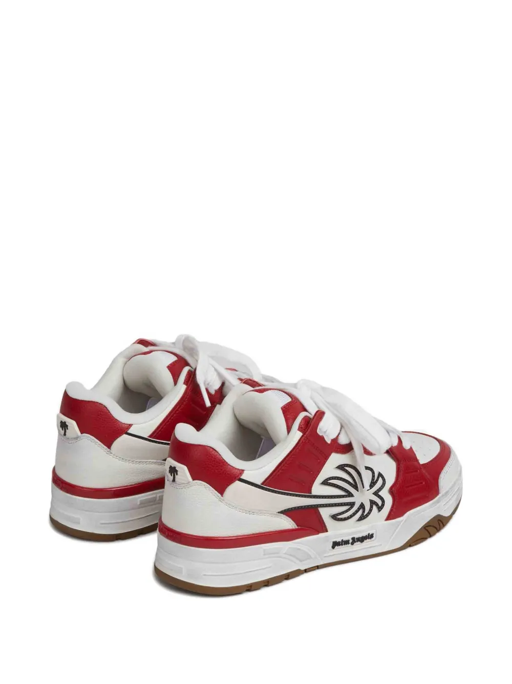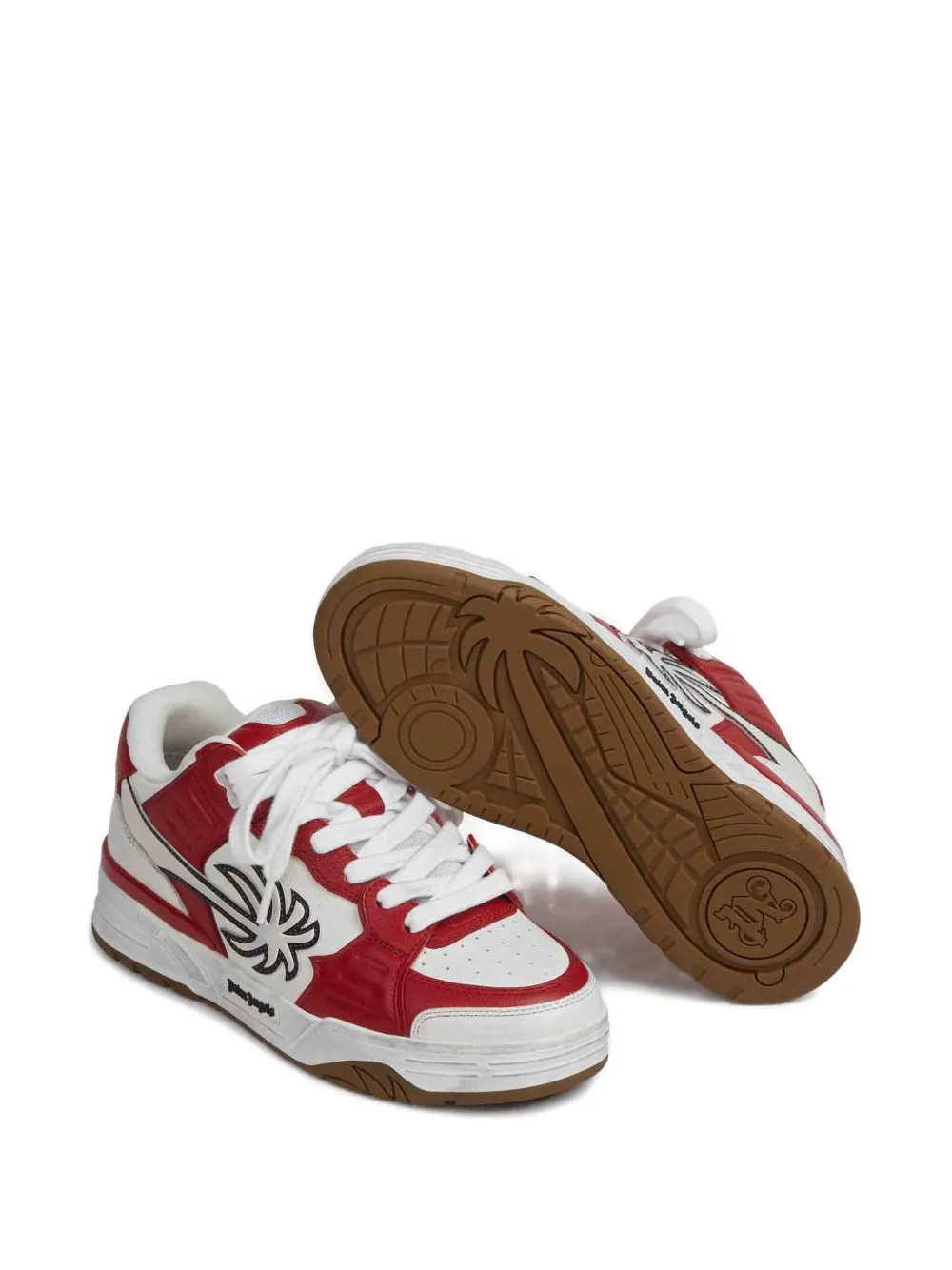 Красно-белые кожаные кеды с нашивкой в виде пальмы, шнуровкой, низким силуэтом и резиновой подошвой