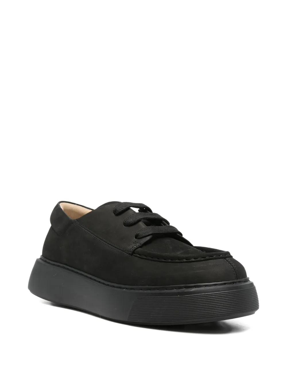 Черный кожа платформенная подошва шнуровка круглый носок мягкий воротник